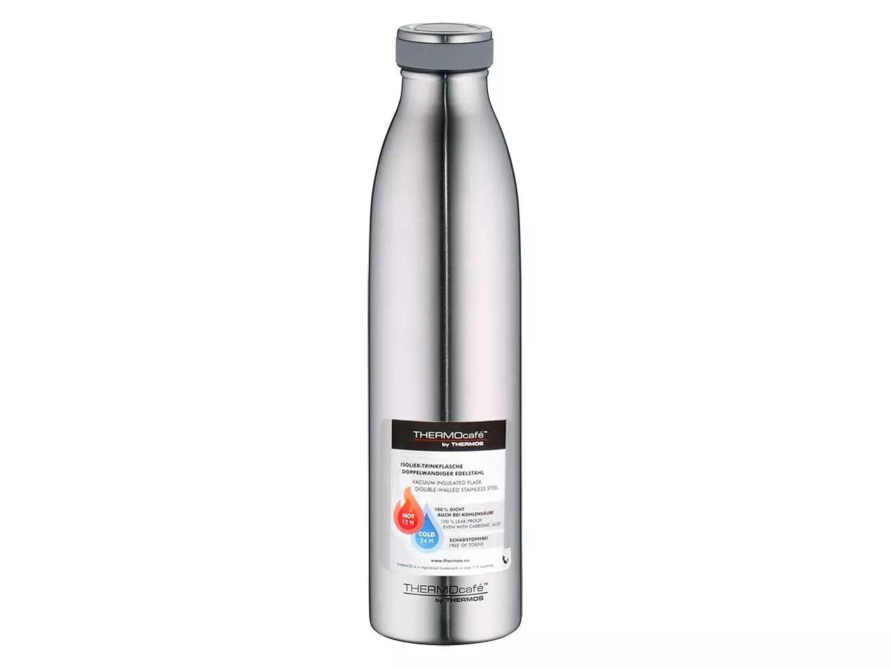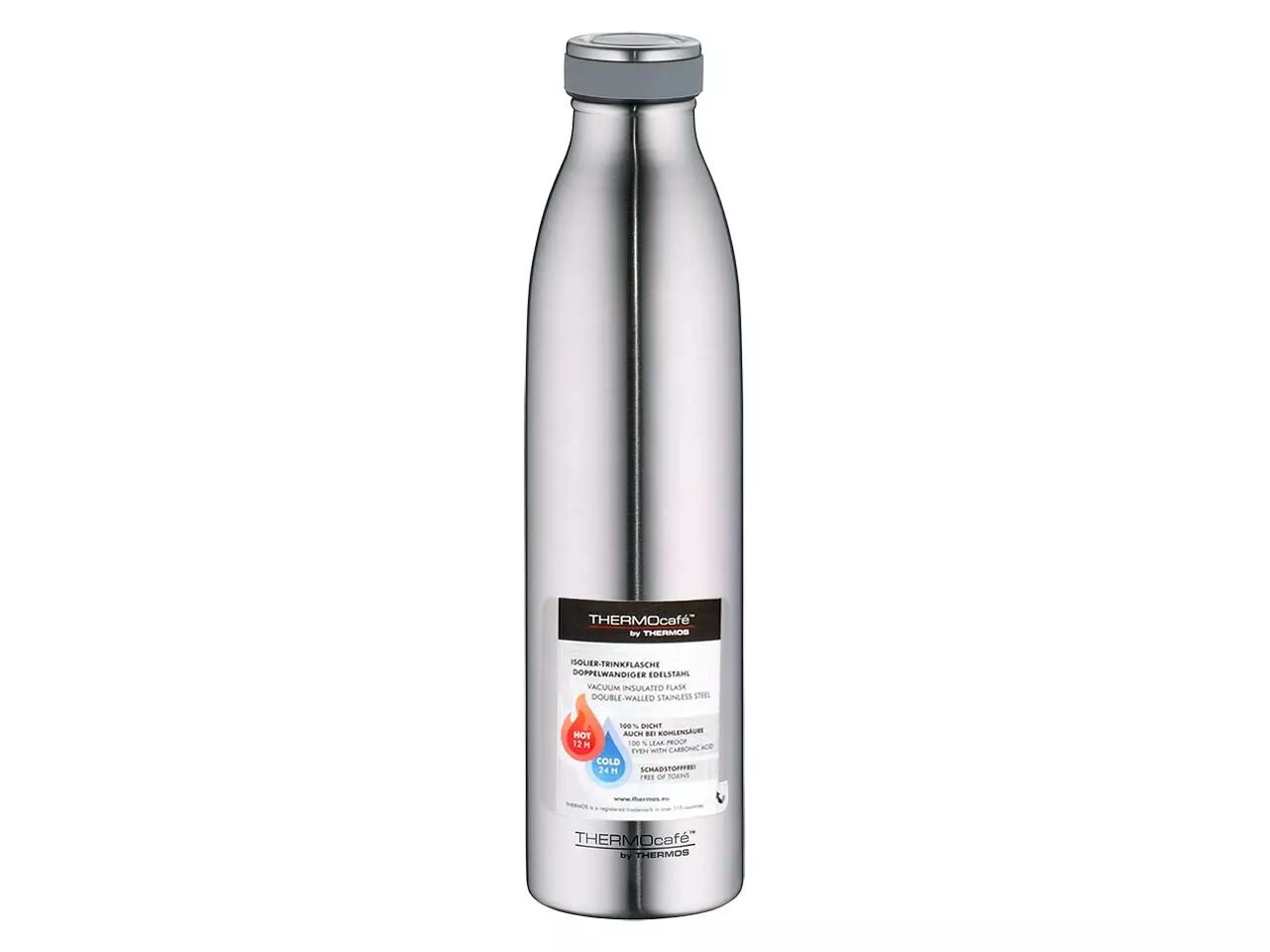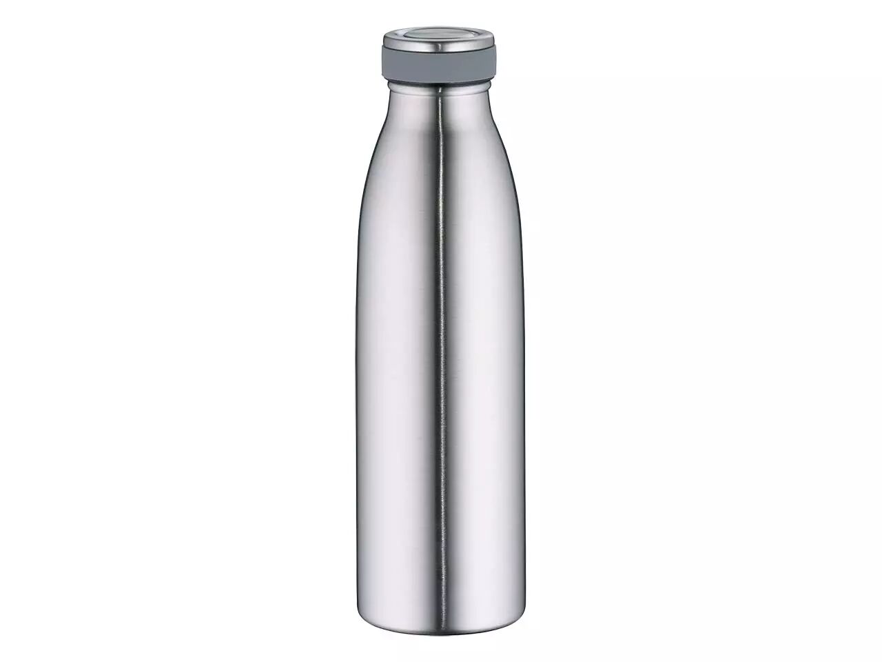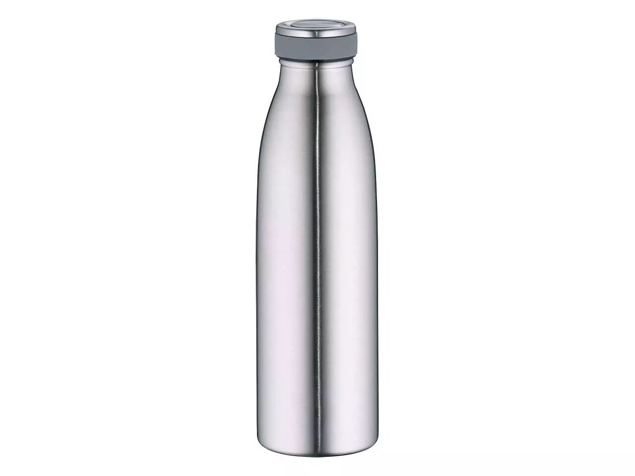 Cette gourde isotherme à double paroi en acier inoxydable de haute qualité isole parfaitement : les boissons restent chaudes pendant 12 heures et même froides pendant 24 heures ! Son design fin permet à cette groudre de se glisser partout. Elle reste étanche même avec des boissons gazeuses. Particulièrement robuste, et très durable, elle est également exempt de BPA. La bague en caoutchouc du bouchon permet une ouverture facile sans glisser. Disponible en deux capacités : 0,5 l ou 0,75 l.