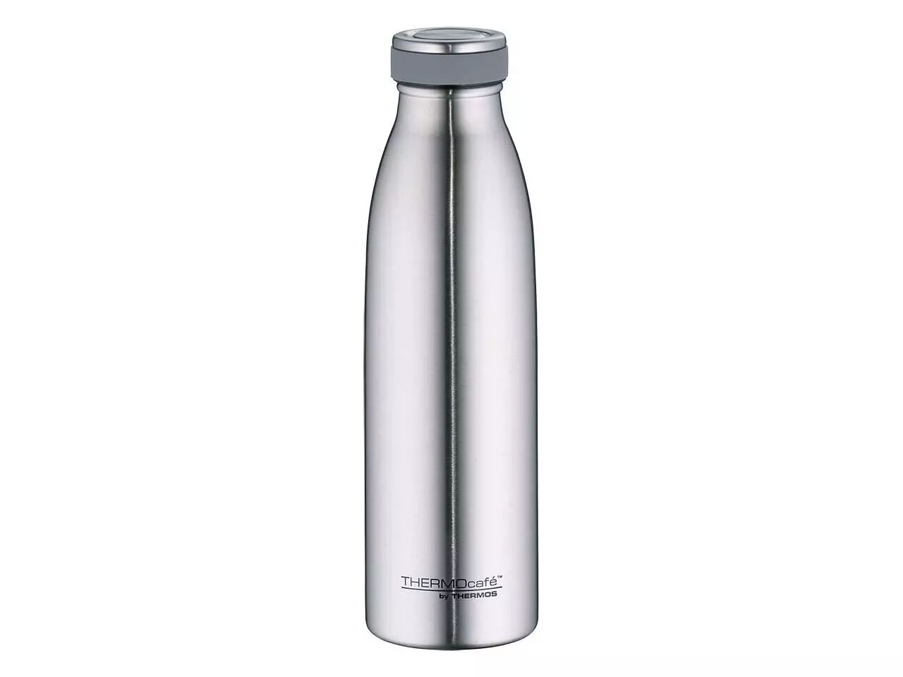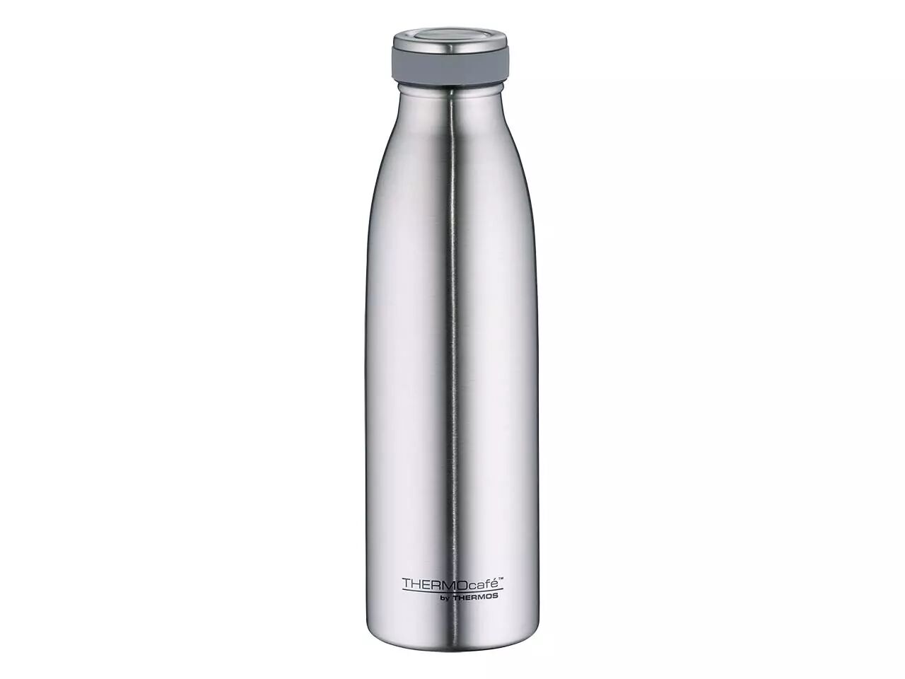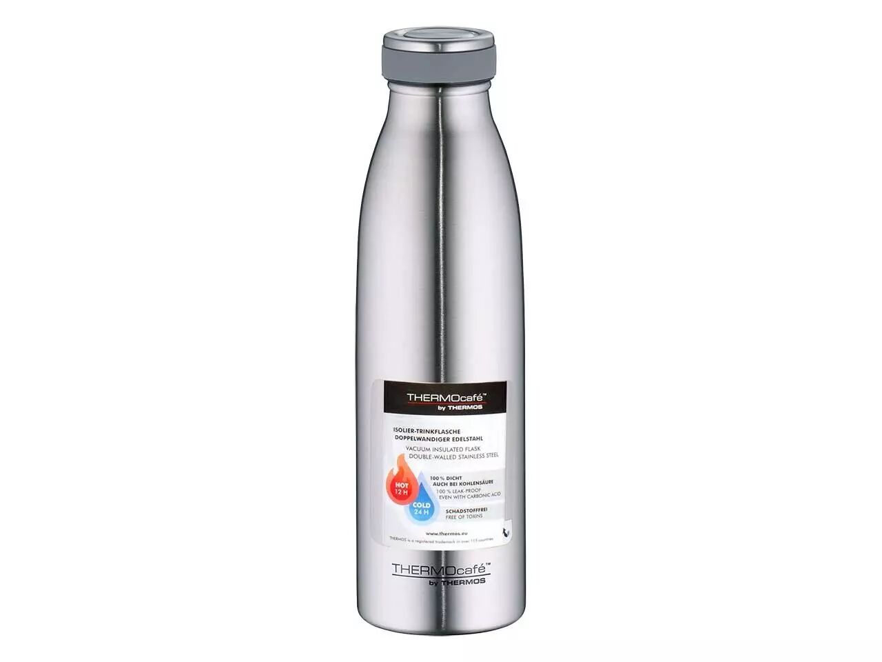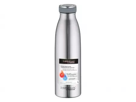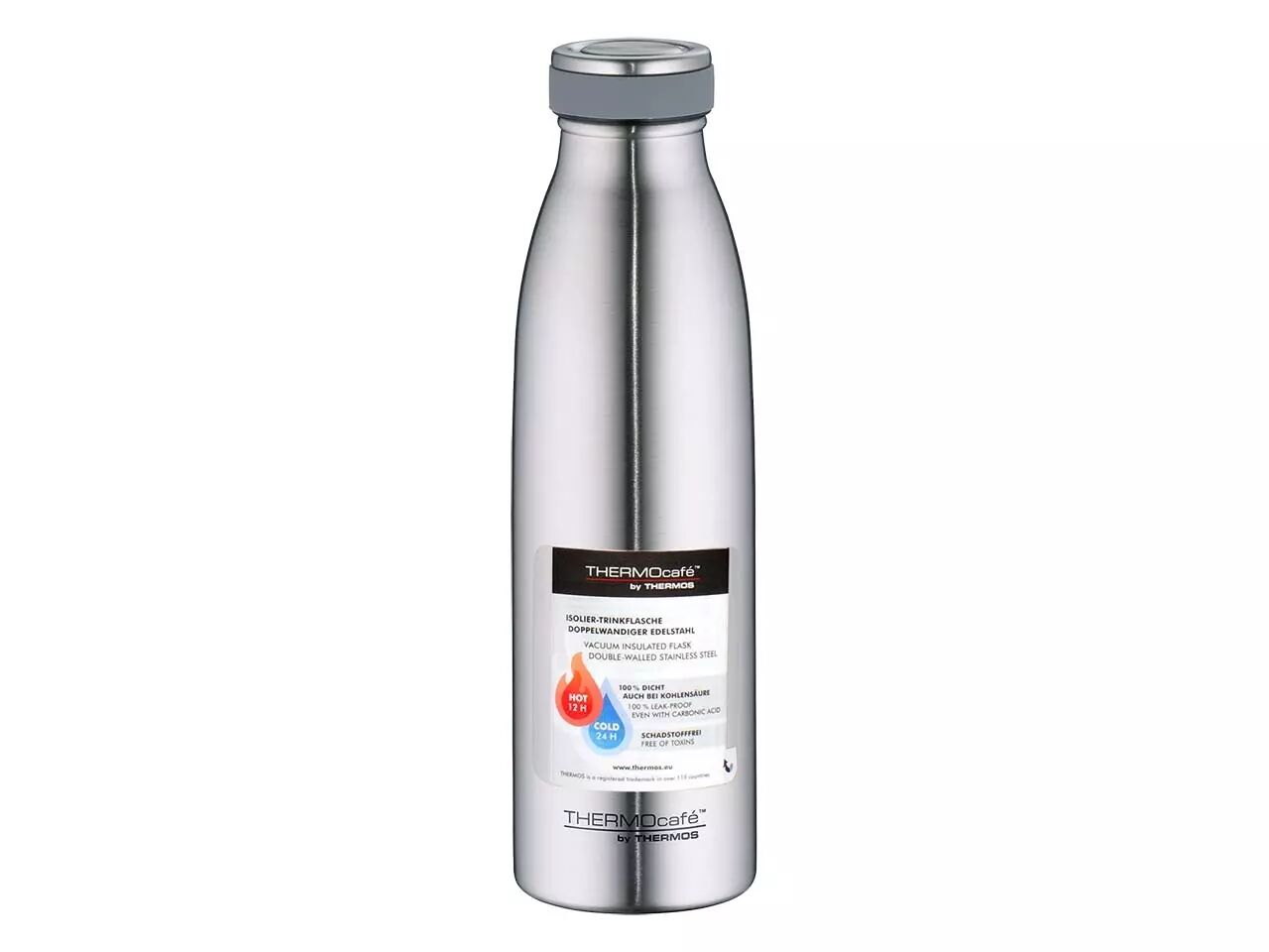 Cette gourde isotherme à double paroi en acier inoxydable de haute qualité isole parfaitement : les boissons restent chaudes pendant 12 heures et même froides pendant 24 heures ! Son design fin permet à cette groudre de se glisser partout. Elle reste étanche même avec des boissons gazeuses. Particulièrement robuste, et très durable, elle est également exempt de BPA. La bague en caoutchouc du bouchon permet une ouverture facile sans glisser. Disponible en deux capacités : 0,5 l ou 0,75 l.