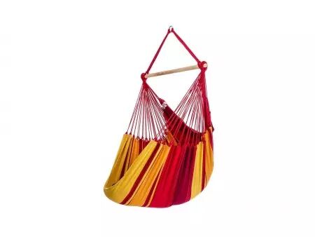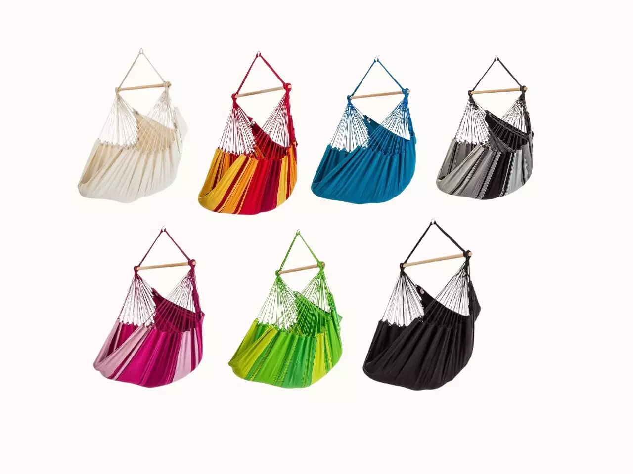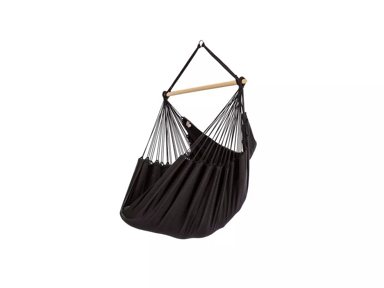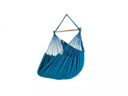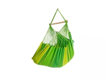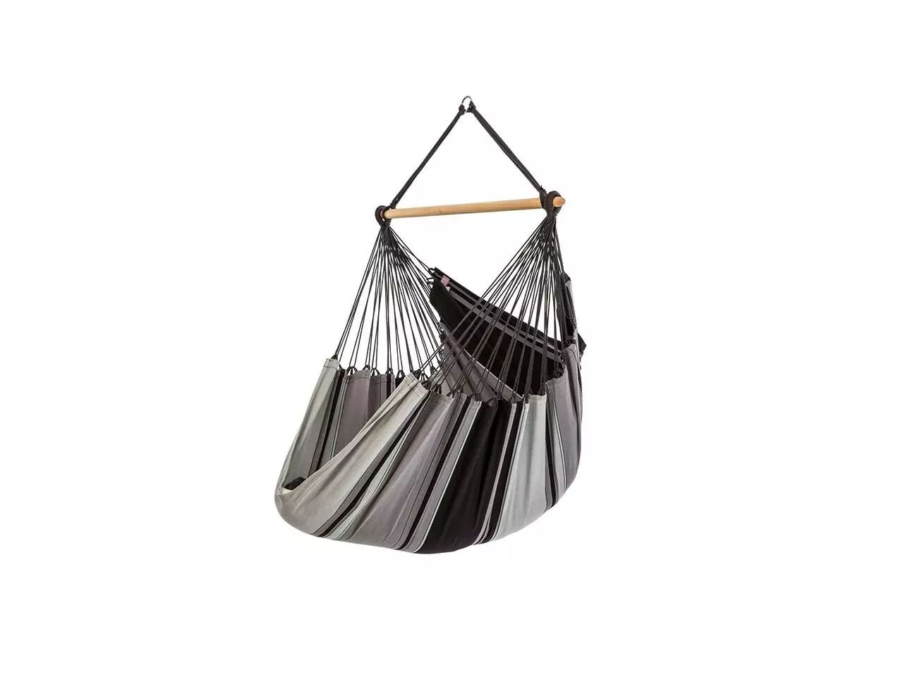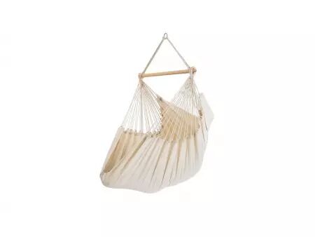 Siège-hamac grand confort en coton bio certifié GOTS. Grâce à sa longueur généreuse, la toile de coton bio de ce siège-hamac épouse parfaitement la forme du corps. Il vous invite irrésistiblement à un moment de rêverie, détente, en vous laissant doucement balancer. Confort et douceur : ce siège suspendu est si grand qu'on peut s'y allonger complètement ou s'y asseoir à deux. Il est livré avec une barre en bois de frêne, qui peut être huilée si nécessaire. Livré dans un sac en tissu permettant son rangement et transport. Surface d'assise 130 x 200 cm. Remarque : ne comprend pas de kit de suspension, à acheter séparément.