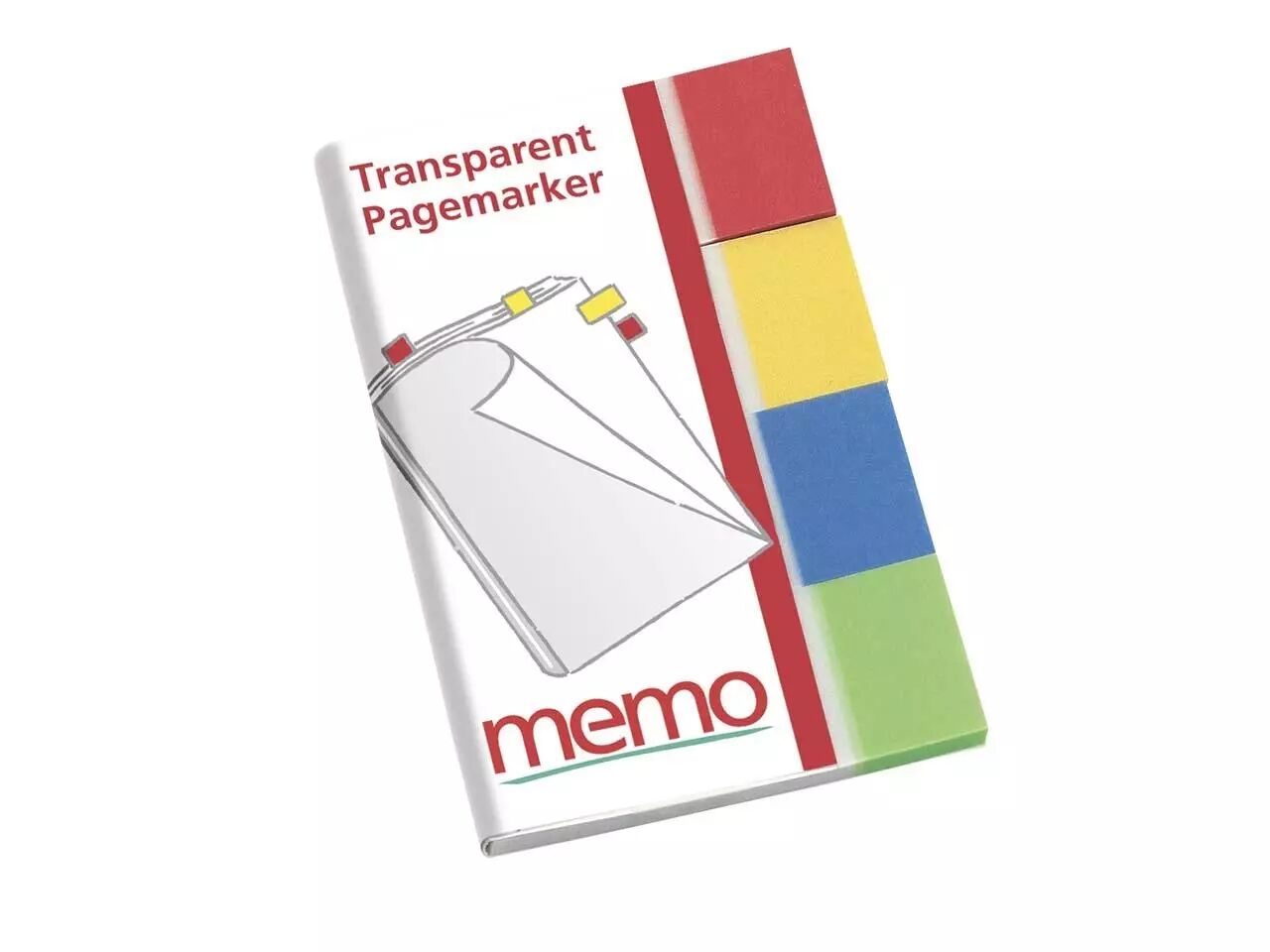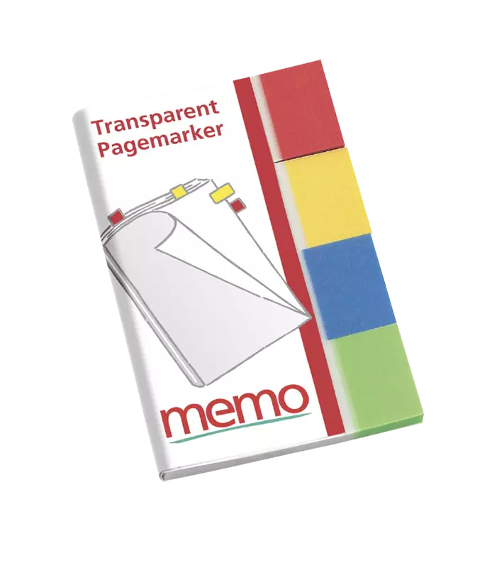 Papier cristal au lieu du plastique habituellement utilisé. On peut écrire sur la bordure colorée. Contient 4 x 40 marque-pages, format L50 x H20 mm, rouge, jaune, bleu, vert. Grammage 100 g/m². Labelisé FSC® Mix.