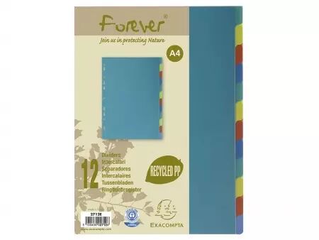 Un bel exemple de revalorisation des déchets de matière plastique : la gamme «Forever» en polypropylène recyclé de grande qualité est fabriqué à 100 % avec des matériaux issus du recyclage des matières plastiques, ce qui lui vaut le label «Ange Bleu» ! L'épaisseur de 0,7 mm confère aux produits stabilité et longévité pour protéger au mieux vos documents. La gamme couvre le classement, le tri et l'archivage. La surface est texturée tel du papyrus et présente un aspect naturel, doublé d'une prise en main agréable. Fabriqué en France avec les hauts critères de qualité Exacompta.