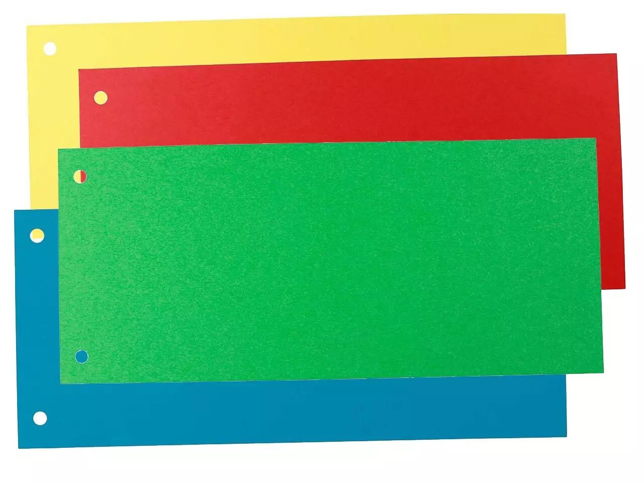 Avec eux, vous trouverez immédiatement ce que vous cherchez : bandes intercalaires de couleurs vives en carton recyclé robuste de 180 g/m² (label Ange Bleu). L240 x H105 mm. Lot de 100 pièces.