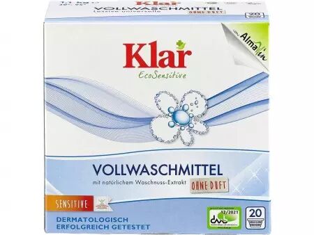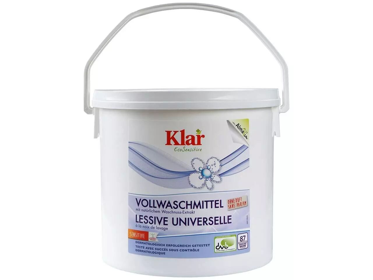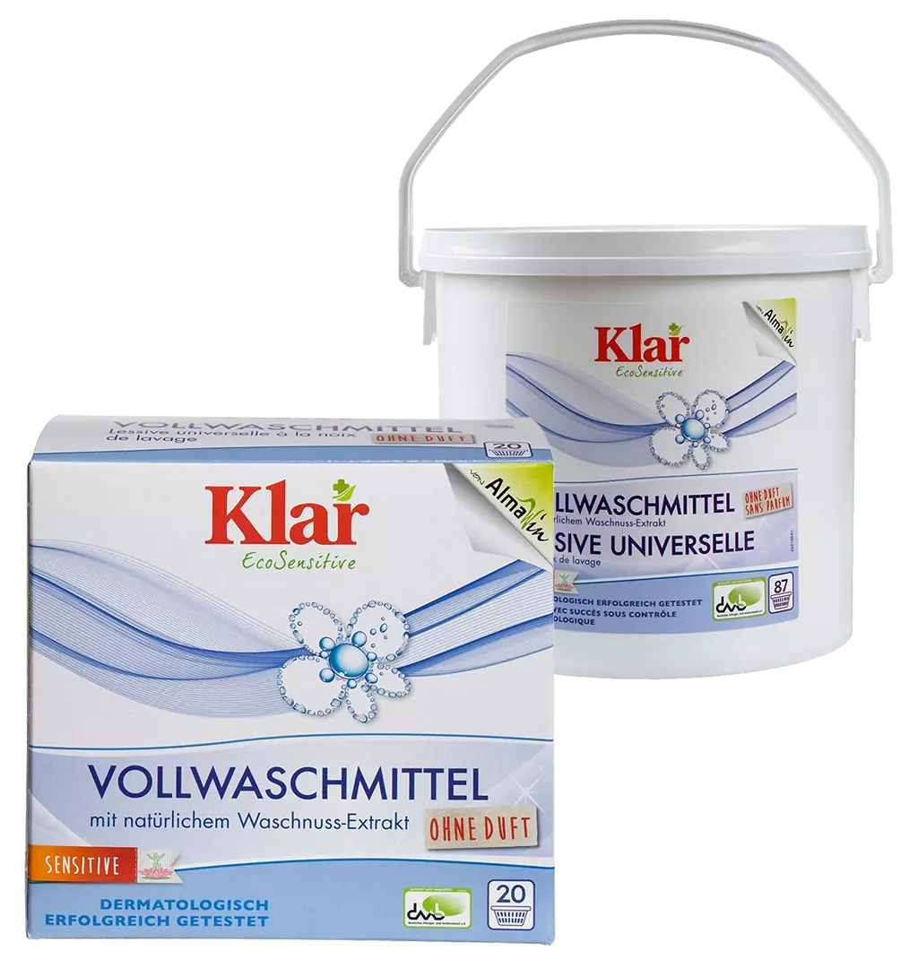 Lessive disponible aujourd'hui en poudre : l'entreprise Klar a mis au point, la première, cette lessive en poudre à partir des noix de lavage, pour faciliter l'utilisation de ce produit naturel. Ce produit nouveau améliore aussi la capacité de lavage et le rendement, ce qui le place en bonne position par rapport aux lessives conventionnelles. On peut maintenant laver nature, sans aucun compromis ! Pour le linge blanc et de couleur, à toutes les températures. Un adoucissant est déjà contenu dans la lessive. Pour le dosage, suivre le mode d'emploi sur l'emballage.