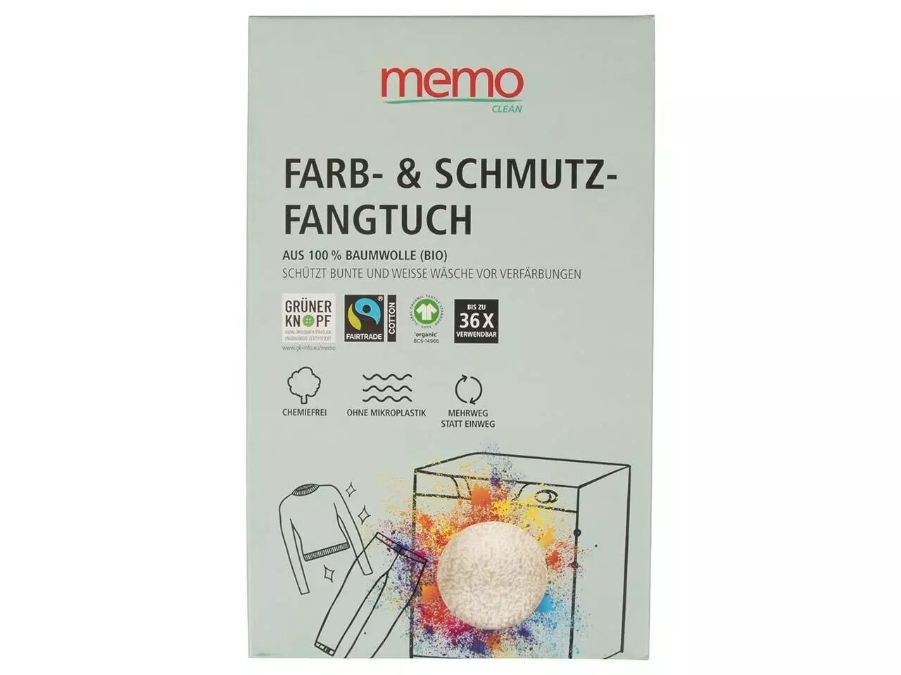 Grâce à ce chiffon anti-transfert de couleurs, trier le linge par couleur n'est plus nécessaire ! Ce chiffon constitué de tissu éponge de haute qualité en coton biologique certifié GOTS est absorbant et retient les particules de couleur et de saleté qui sinon déteigneraient sur les autres textiles de couleur claire. En s'épargnant le tri et le lavage couleur par couleur, on évite la multiplcation de cycles de lavage en demi-charge, ce qui permet d'économiser de l'eau, de l'énergie et du temps. Autre point positif : ce produit Memo a été conçu pour être réutilisable, jusqu'à 36 fois (ce qui évite les déchets qu'engendrent les lingettes anti-décoloration jetables classiques). Format 30 x 22 cm.