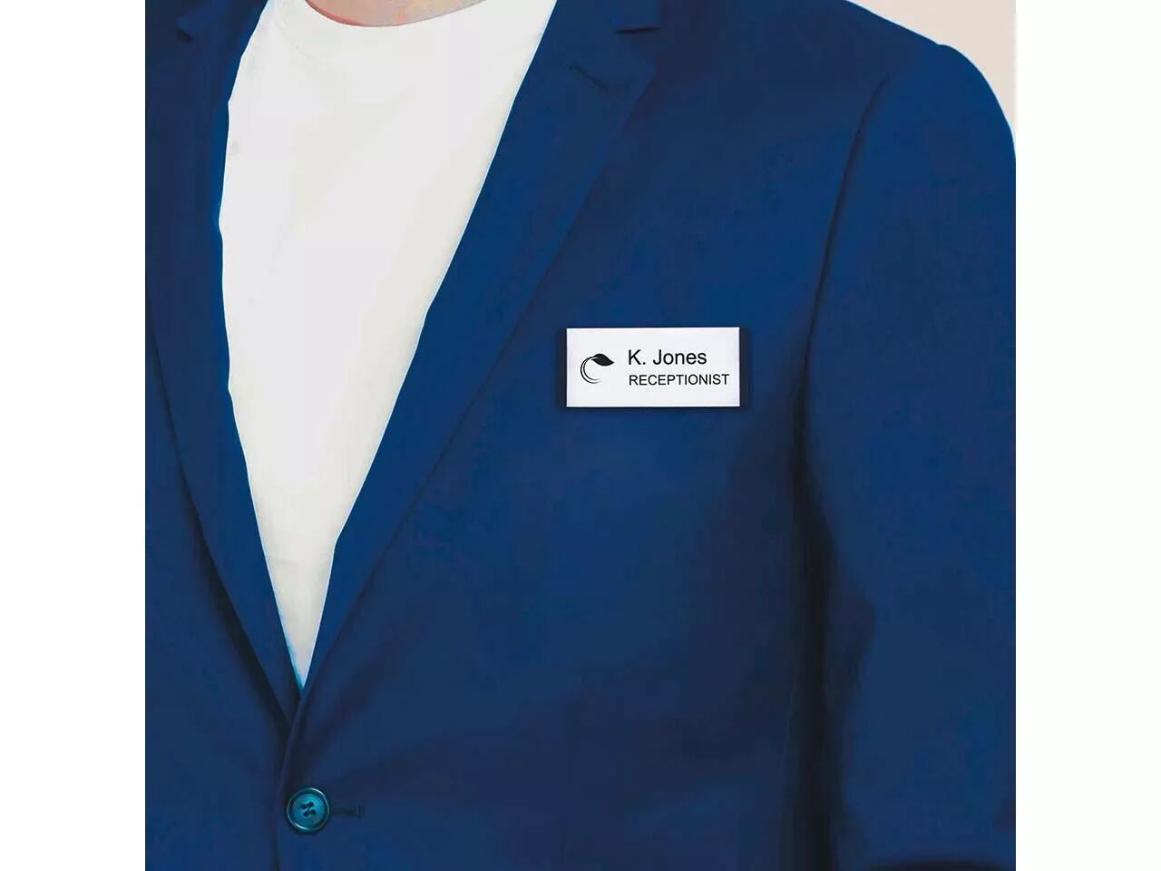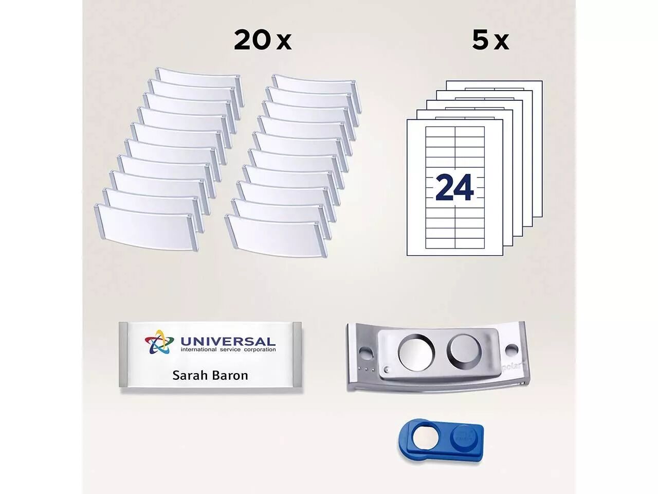 Lot de badges magnétiques 68 x 22 mm doté d'un système aimanté innovant qui ainsi n'abîme pas du tout les vêtements. Vendu en 3 conditionnements : 5, 10 ou 20 pièces.