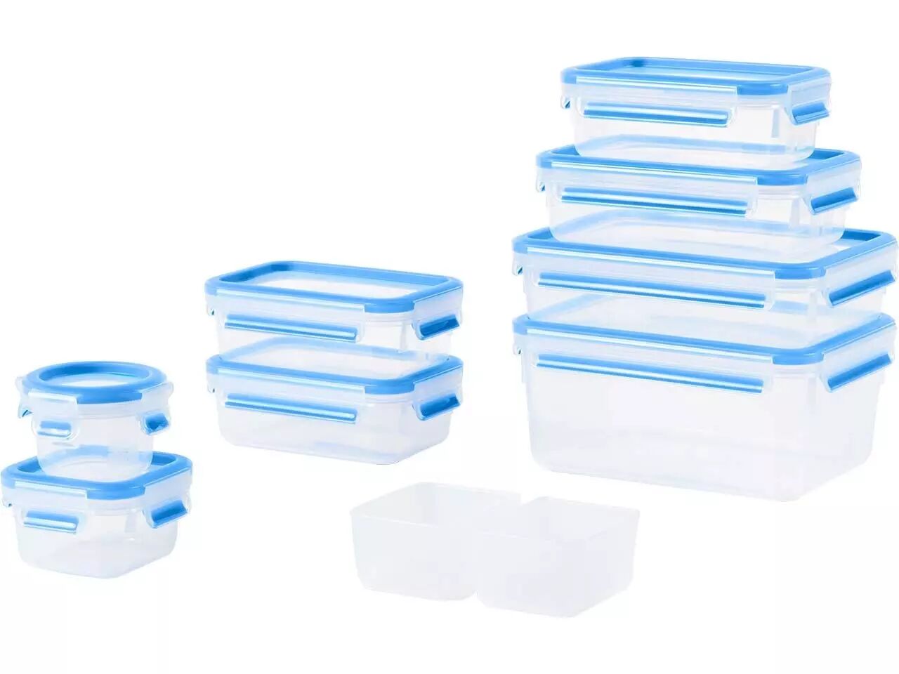-lot de 10 : 1 x 0,15 l, 1 x 0,2 l, 2 x 0,55 l, 1 x 0,8 l, 1 x 1,1 l, 1 x 1 l, 1 x 2,2 l et deux sous-boîtes à compartimenter