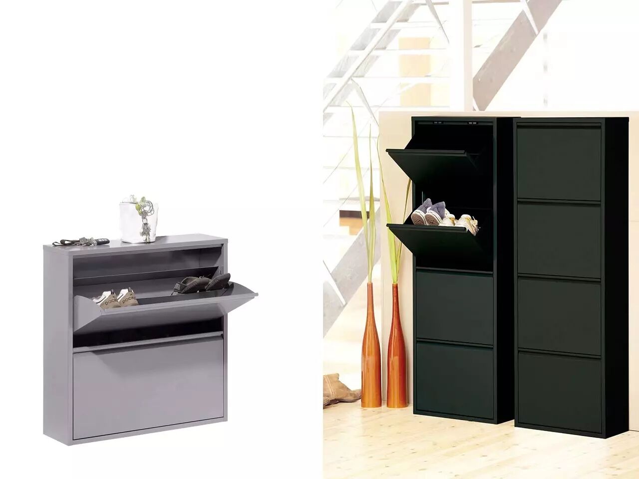 Ce meuble à chaussures en métal vous permettra de ranger efficacement jusqu'à 16 ou 19 paires de chaussures. Finis les alignements désordonnés de chaussures qui traînent dans l'entrée (alors qu'il n'est pas du tout prévu que Petit Papa Noël passe y déposer des jouets par milliers ;)).