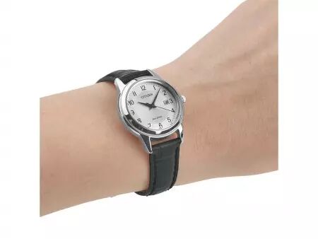 Avec leur bracelet en cuir et leur cadran épuré les montres solaire Citizen «Leather AW1231-07A» et «Leather FE1081-08A» sont indémodables et particulièrement chics. Elles sont équipées d'un boîtier gris argent de 29,5 ou 40 mm de diamètre en acier inoxydable. Le verre minéral particulièrement lumineux offre une bonne lisibilité du cadran. Grâce au système Eco-Drive, la montre fonctionne grâce à la lumière, sans pile. Un accumulateur interne permet un fonctionnement de 240 jours sans lumière. Le fermoire à boucle simple assure le bon maintien de la montre au poignet. Ces montres sont équipées d'un dateur et sont étanches jusqu'à 4 bars.