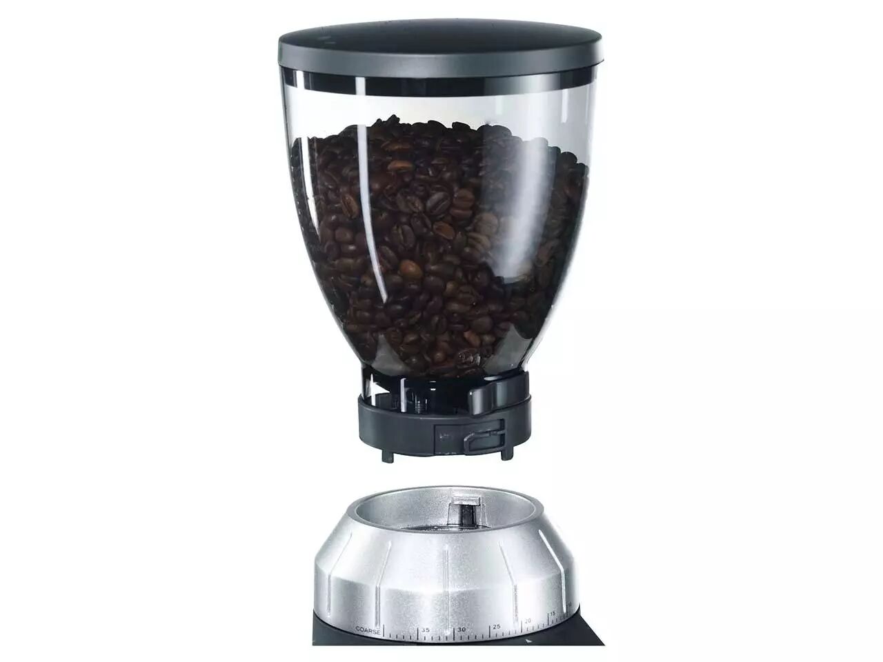Préparez un café moulu de haute qualité pour expresso ou café filtre selon votre goût personnel : le moulin offre 40 réglages de mouture différents ! Le boîtier est en aluminium robuste et durable. À l'intérieur, la meule cônique en acier inoxydable, la roue à aubes en aluminium et l'insert antistatique fonctionnent parfaitement ensemble. Le réservoir peut contenir jusqu'à 350 g de grain et être facilement retiré pour le nettoyage ou le remplacement des grains. Puissance 128 W. L13,5 x P23 x H39,7 cm. Poids 2,6 kg.