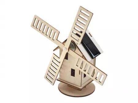 Ce moulin à vent n'a pas besoin de vent, mais de soleil ! La maquette est fabriquée en bois de peuplier léger et aucun outil n'est nécessaire pour le montage. Grâce à la lumière du soleil, la cellule solaire cristalline alimente le moteur qui fait tourner les ailes du moulin. À partir de 8 ans. Dimensions L22 x P7 x H21 cm.