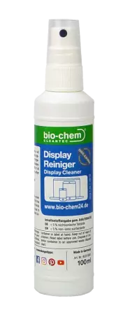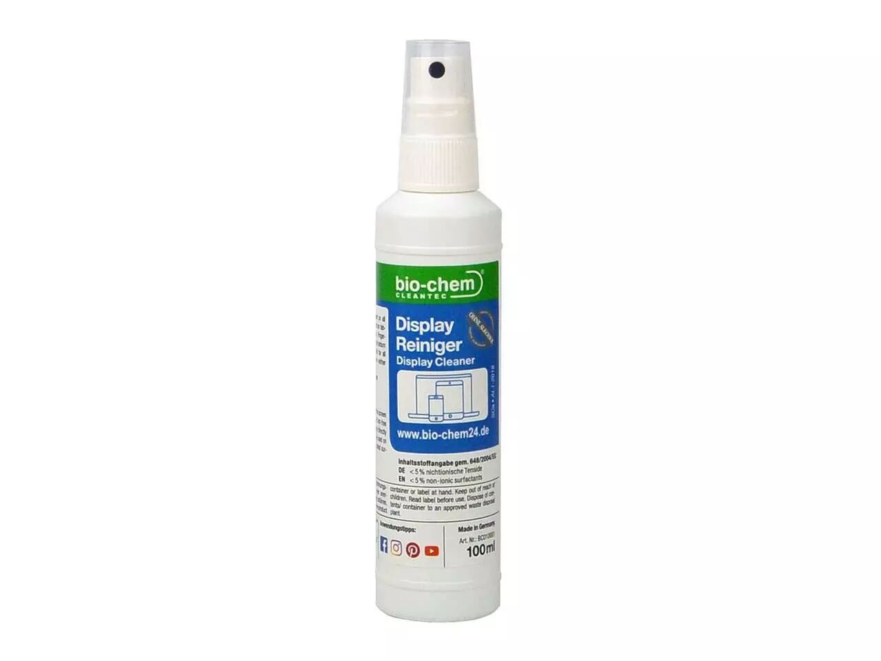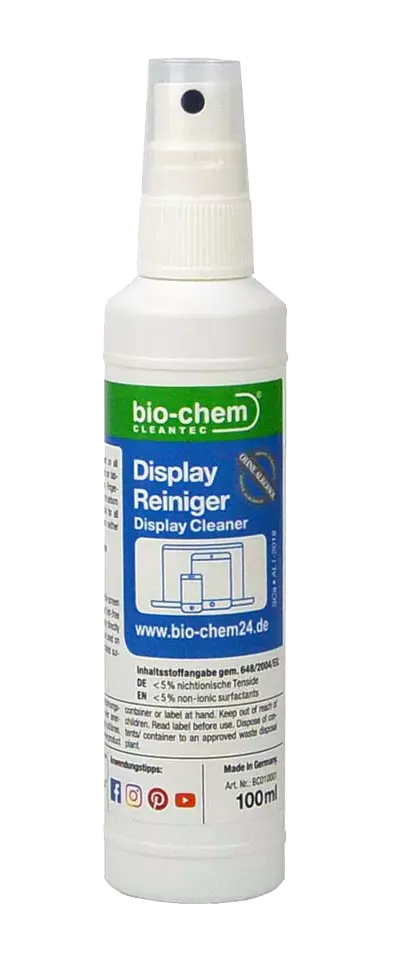 Le nettoyant pour écran Bio-Chem est antistatique et convient au nettoyage et à l'entretien de tous les écrans, tels que ceux des smartphones, tablettes et écrans plats. Il suffit de vaporiser le spray sur l'écran et de l'essuyer avec un chiffon sec ou une microfibre. Le nettoyant élimine efficacement la poussière et les traces, et réduit également l'électricité statique. Flacon de 100 ml avec pulvérisateur. Fabriqué en Allemagne.