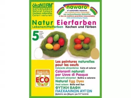 Les colorants pour œufs ökoNORM sont fabriqués à partir de colorants alimentaires naturels et sont idéaux pour la cuisson et la coloration des œufs de Pâques. Un sachet de colorant suffit pour 5 à 7 œufs. Comme les colorants naturels réagissent individuellement avec la teinte initiale de chaque œuf, la coloration peut varier légèrement d'un œuf à l'autre. Boîte de 5 sachets de colorants (jaune, vert, rouge, orange, rose).