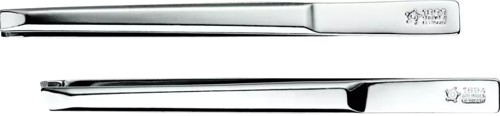 Cette pince à épiler durable Pfeilring est fabriquée en Allemagne et est en acier trempé nickelé. Cela la protège contre la corrosion. Chaque extrémité de la pince est très fine et suffisamment lisse pour pouvoir attraper même les poils les plus fins. La pince à épiler existe avec des bords droits et des bords obliques. L 8 cm.
