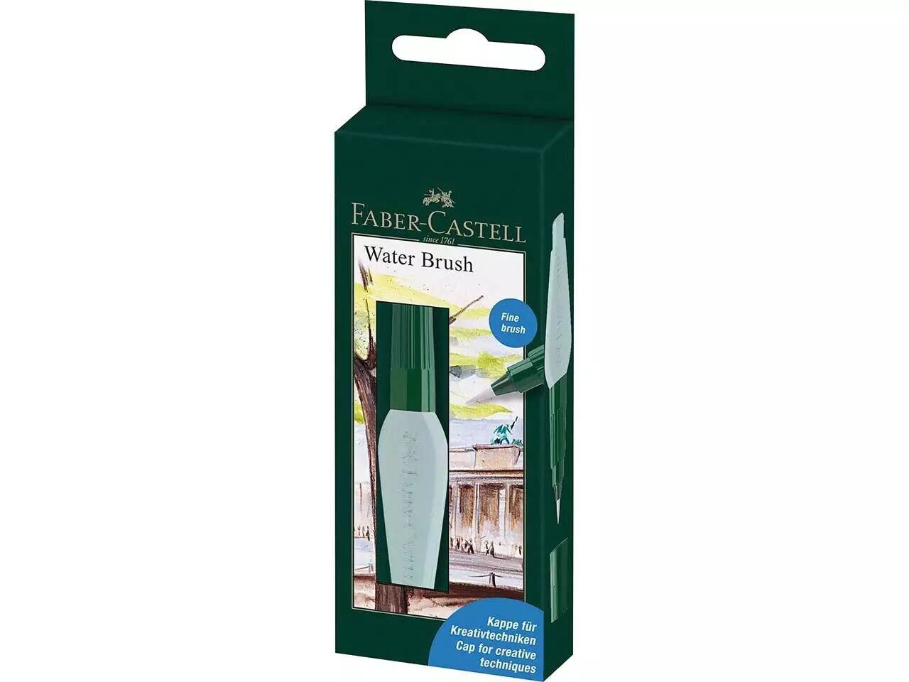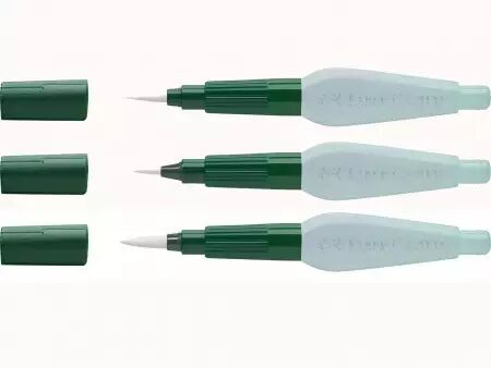 Laissez parler votre âme d'artiste avec ce pinceau à réserve d'eau de chez Faber-Castell. Dévissez et remplissez le réservoir d'eau transparent, une légère pression sur le réservoir suffit. Le capuchon peut être utilisé pour les travaux de grattage. Idéal pour la réalisation nomade d'aquarelles ou pastels faites sur le vif lors de vos balades. Le pinceau à fibres synthétiques et à réservoir d'eau est décliné en trois types de pointes : fine (idéale pour les détails), moyenne et large. Capacité de 6 ml.