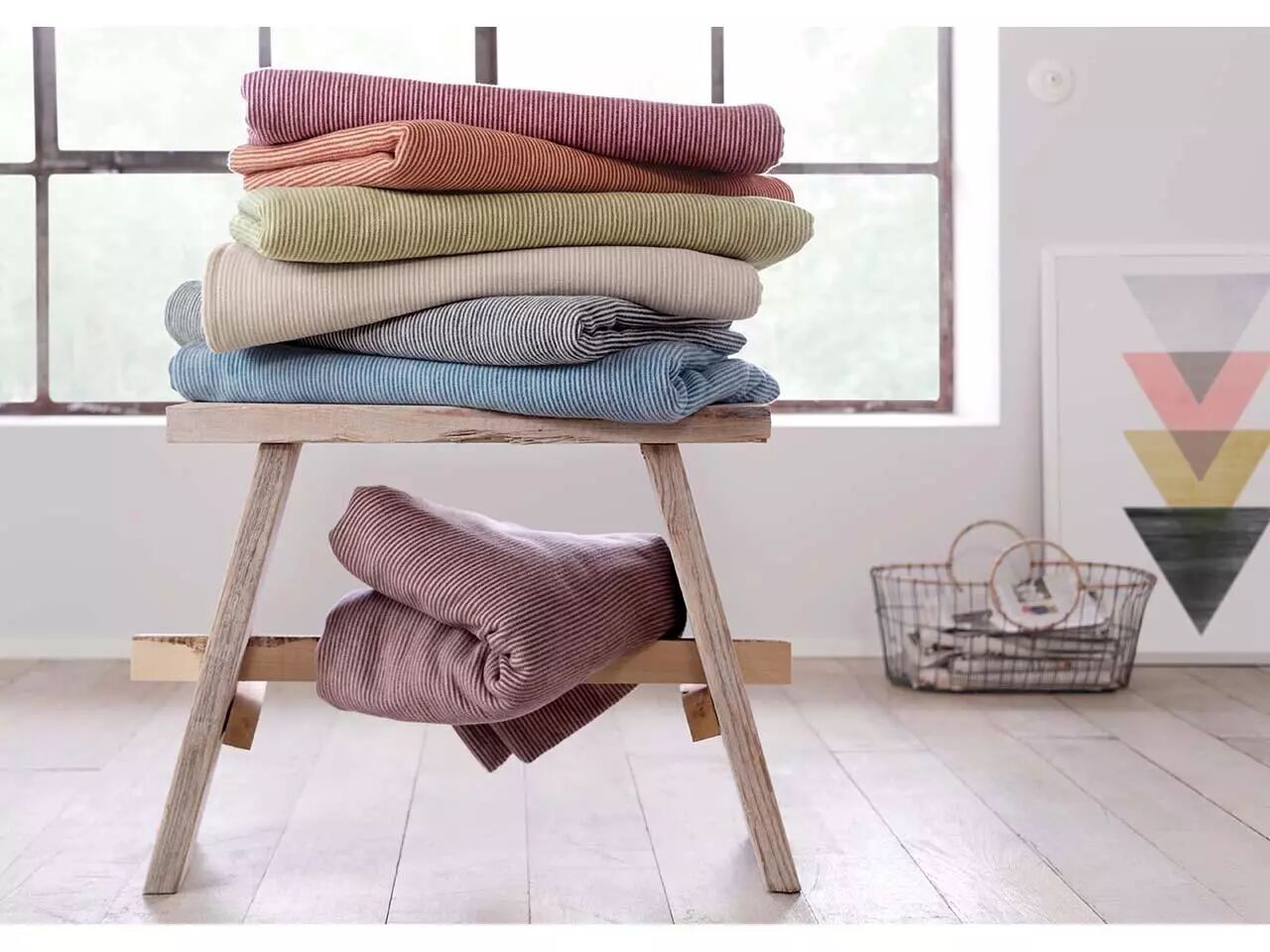 Ce plaid en coton bio vous enveloppera de douceur et vous tiendra bien chaud. Ses fines rayures bicolores tissées jacquard égayeront votre intérieur. Entièrement confectionné d'un épais coton bio (320 g/m²), il est idéale comme plaid, couvre-lit ou simplement jeté sur le canapé. Dimensions L140 x P200 cm.