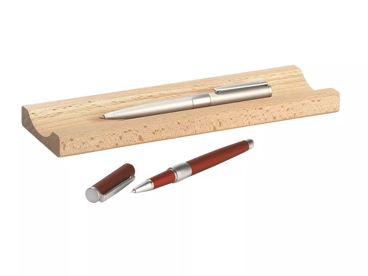 Pour y poser stylos ou coupe-papier. En hêtre huilé. Dimension : L24 x P7 x H2 cm.