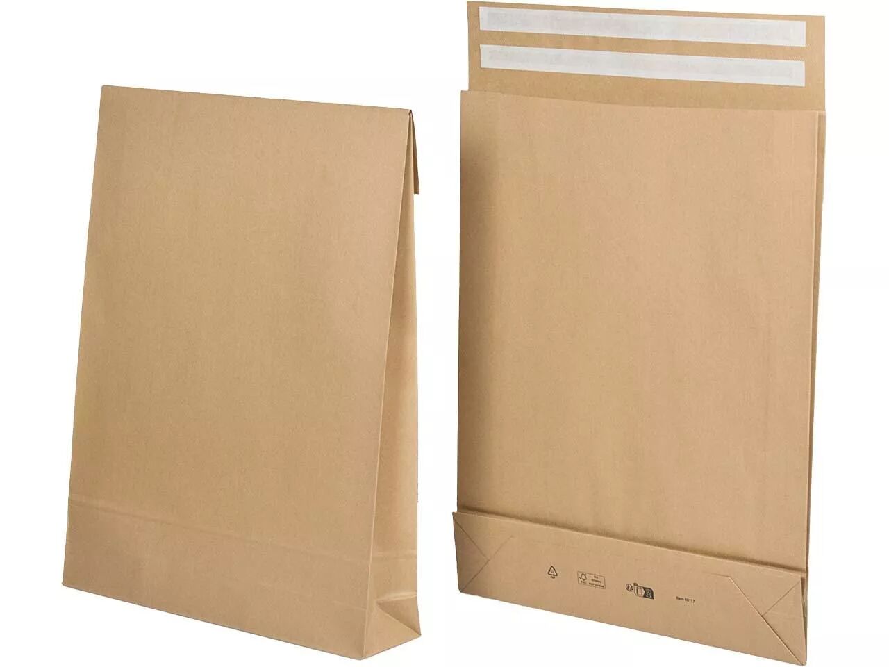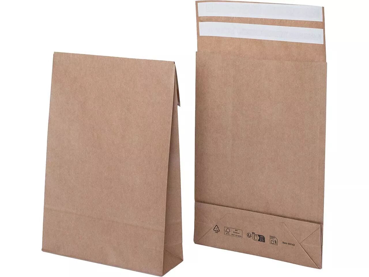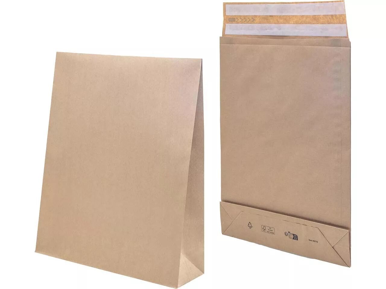 Gamme de pochettes d'expédition à soufflet en kraft brun, fabriquée en Allemagne et certifiées FSC®. Le soufflet permet l'envoi de multiples documents et la double fermeture garantit une fermeture sécurisée, pour un envoi sûr.