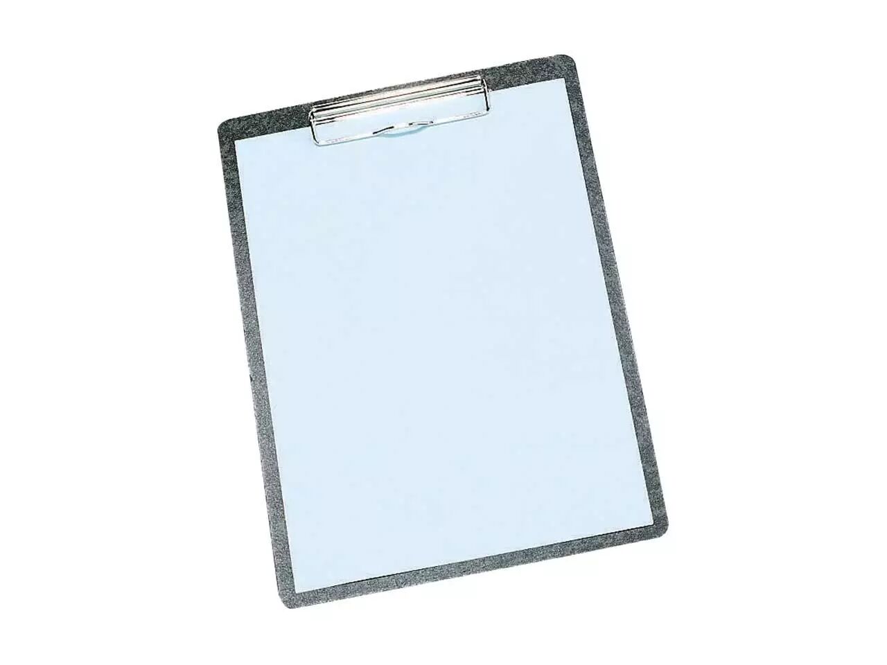 Porte-bloc format A4, avec une pince métallique permettant de fixer des documents, blocs, feuilles volantes d'une épaisseur allant jusqu'à 1 cm. Réalisé en carton recyclé. Dimensions du porte-bloc : 24 x 32,5 cm.