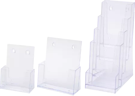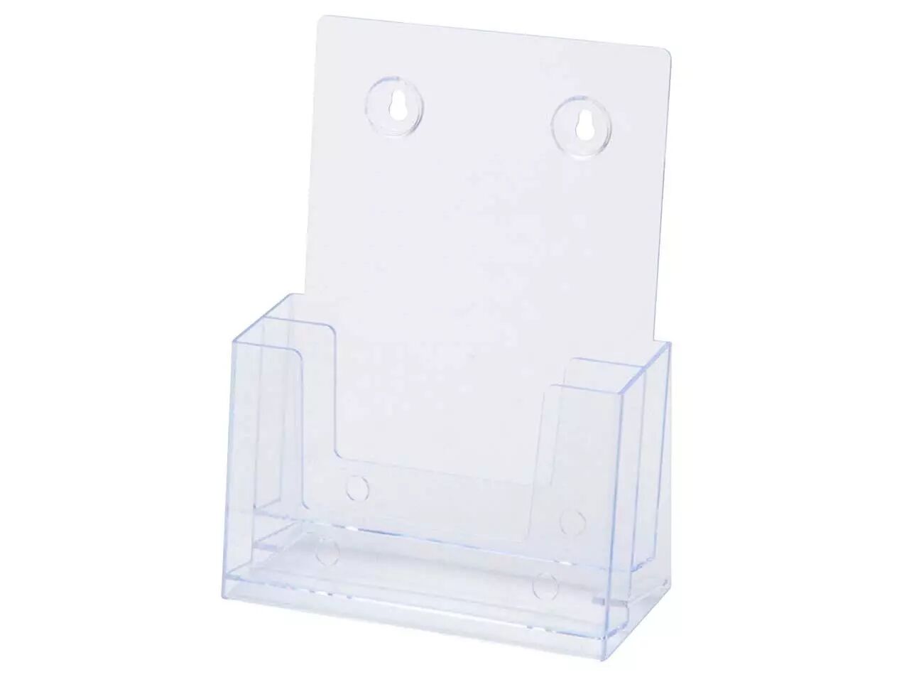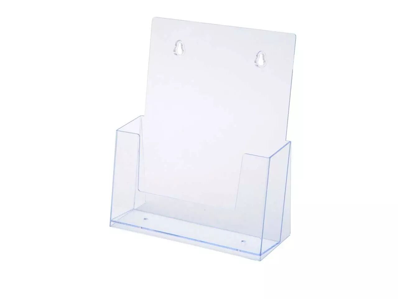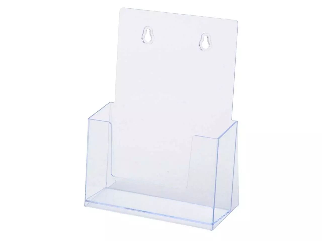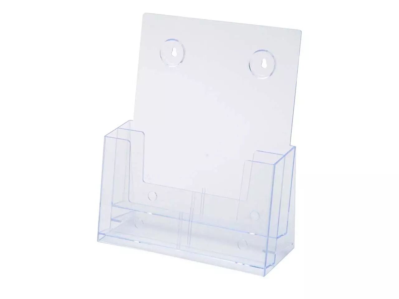 Économique et flexible : ce porte-brochures en polystyrène sans chlore ni plastifiants est parfait pour présenter vos documents d'entreprise, vos prospectus, vos flyers, etc. À poser ou à fixer au mur grâce aux trous de fixation. Livré sans matériel de fixation.