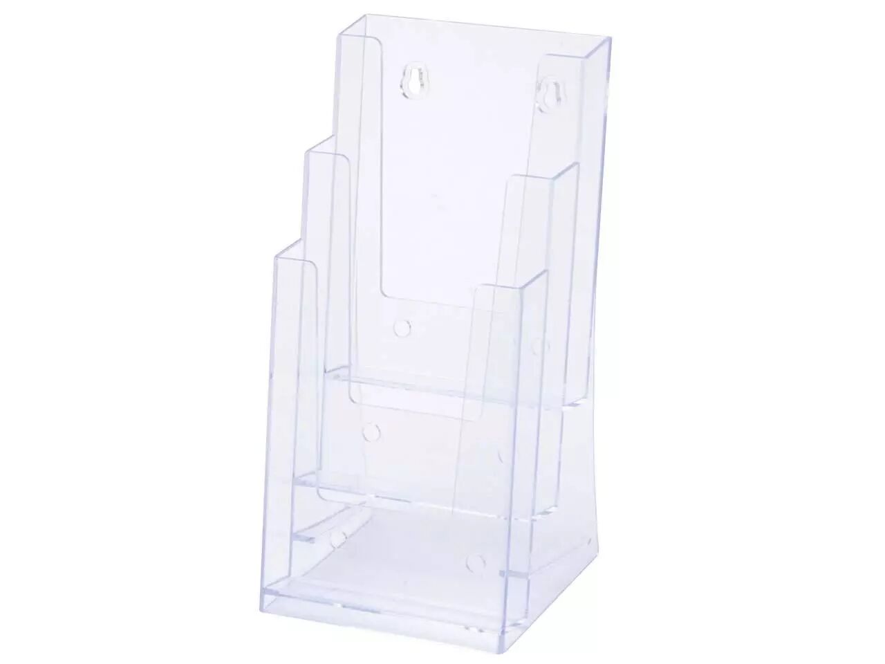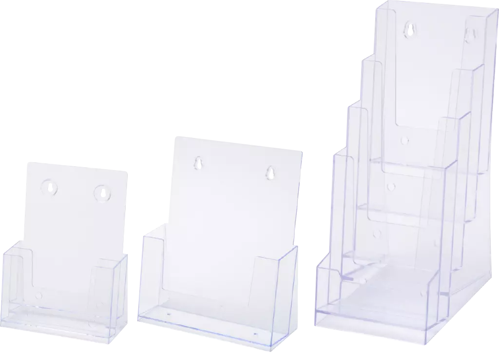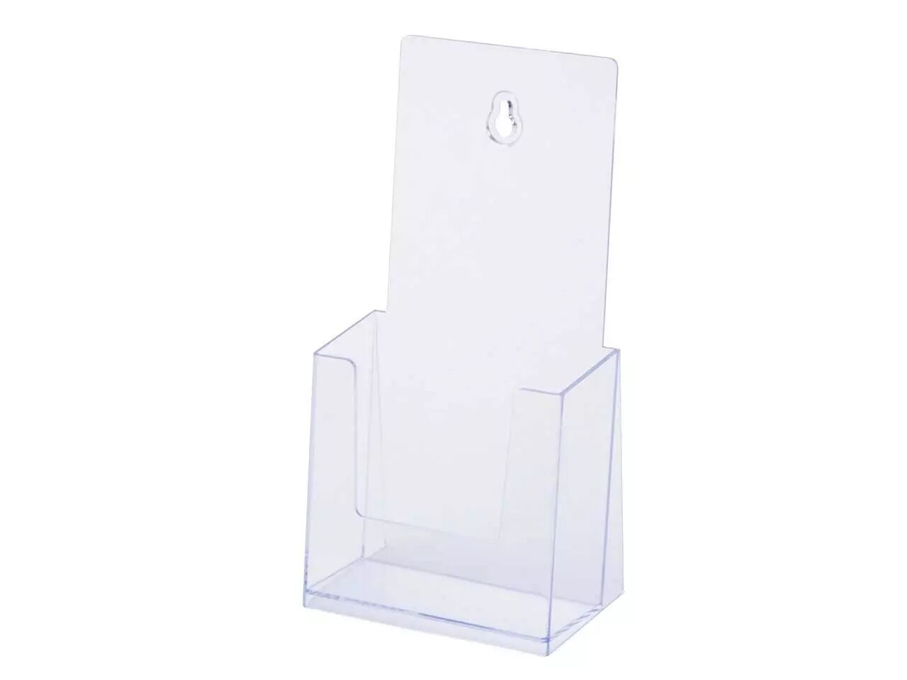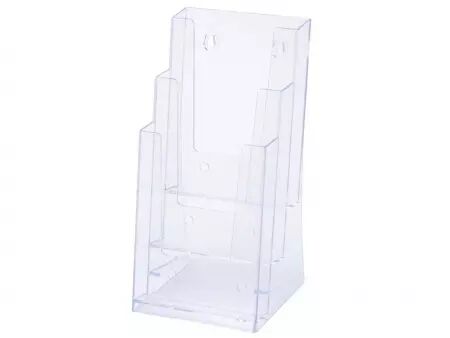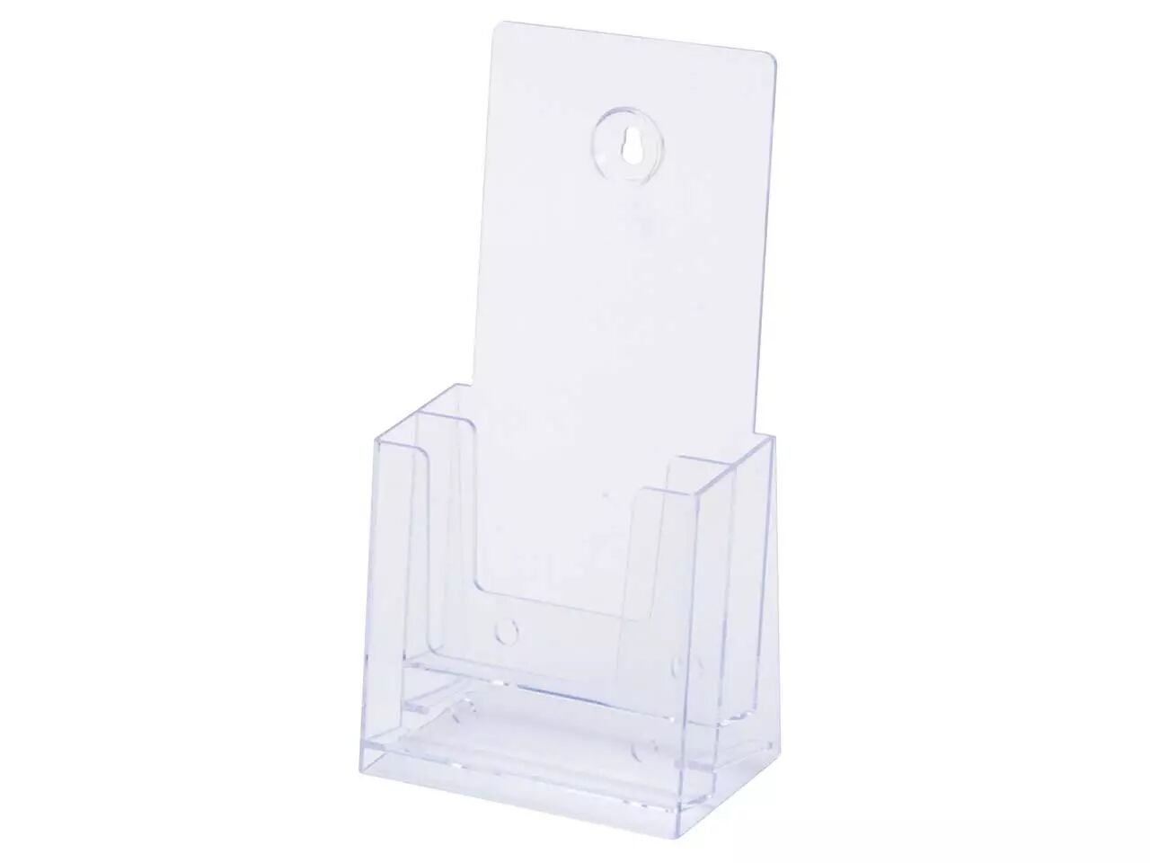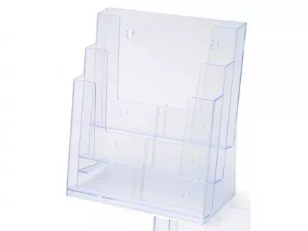 Économique et flexible : ce porte-brochures en polystyrène sans chlore ni plastifiants est parfait pour présenter vos documents d'entreprise, vos prospectus, vos flyers, etc. À poser ou à fixer au mur grâce aux trous de fixation. Livré sans matériel de fixation.
