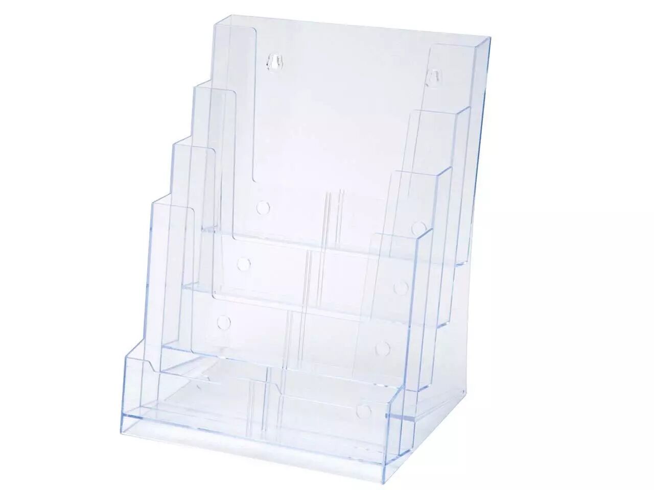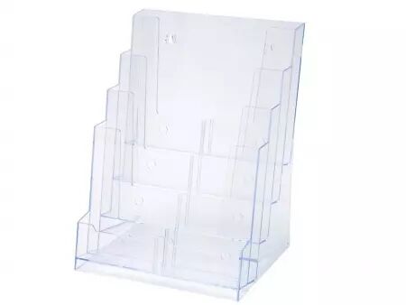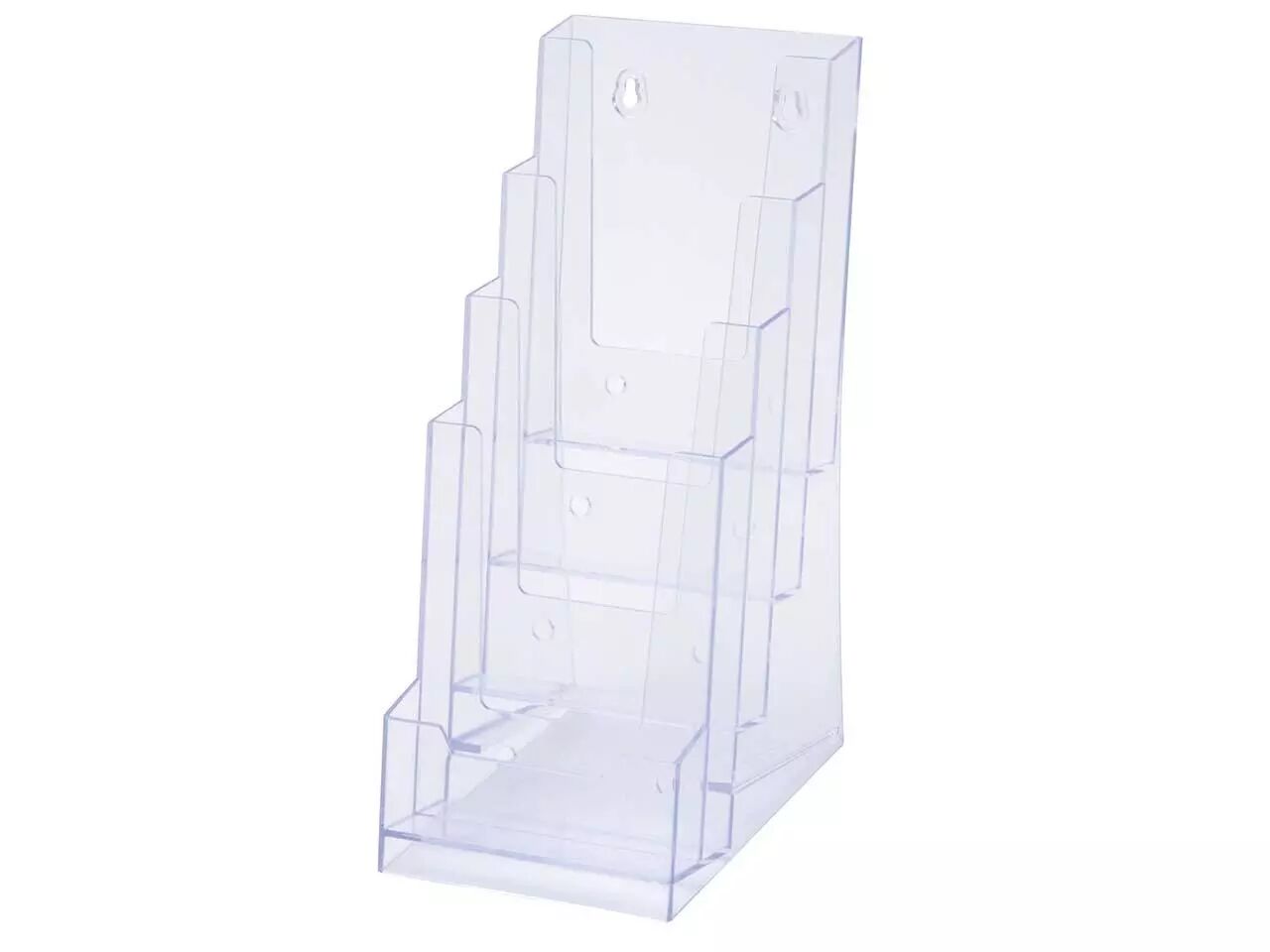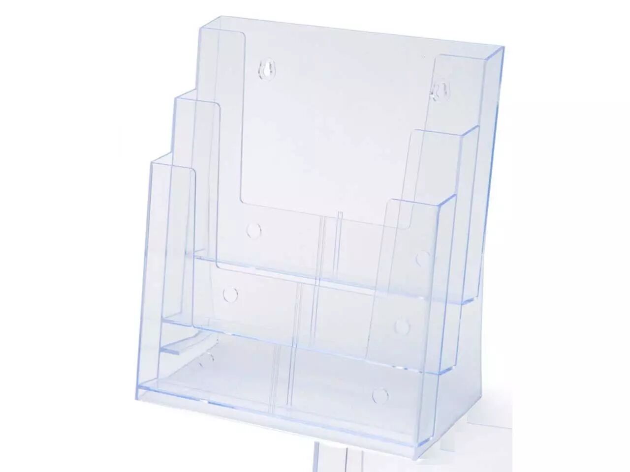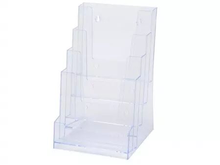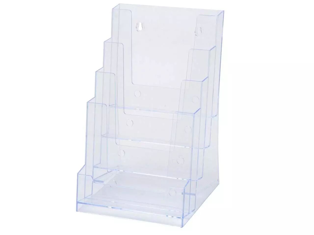 Économique et flexible : ce porte-brochures en polystyrène sans chlore ni plastifiants est parfait pour présenter vos documents d'entreprise, vos prospectus, vos flyers, etc. À poser ou à fixer au mur grâce aux trous de fixation. Livré sans matériel de fixation.