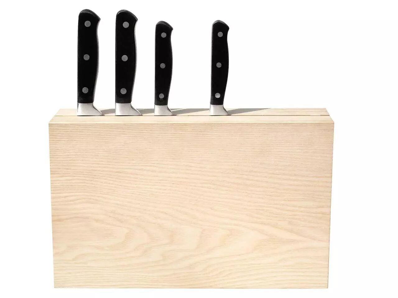 En frêne massif et non traité, ce bloc à couteau est particulièrement agréable avec sa teinte claire.