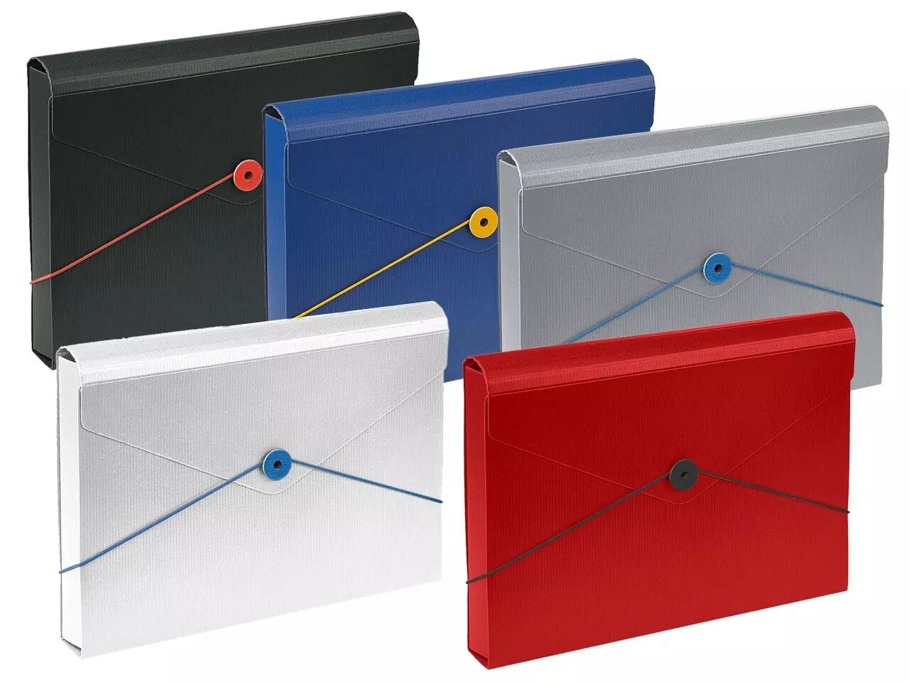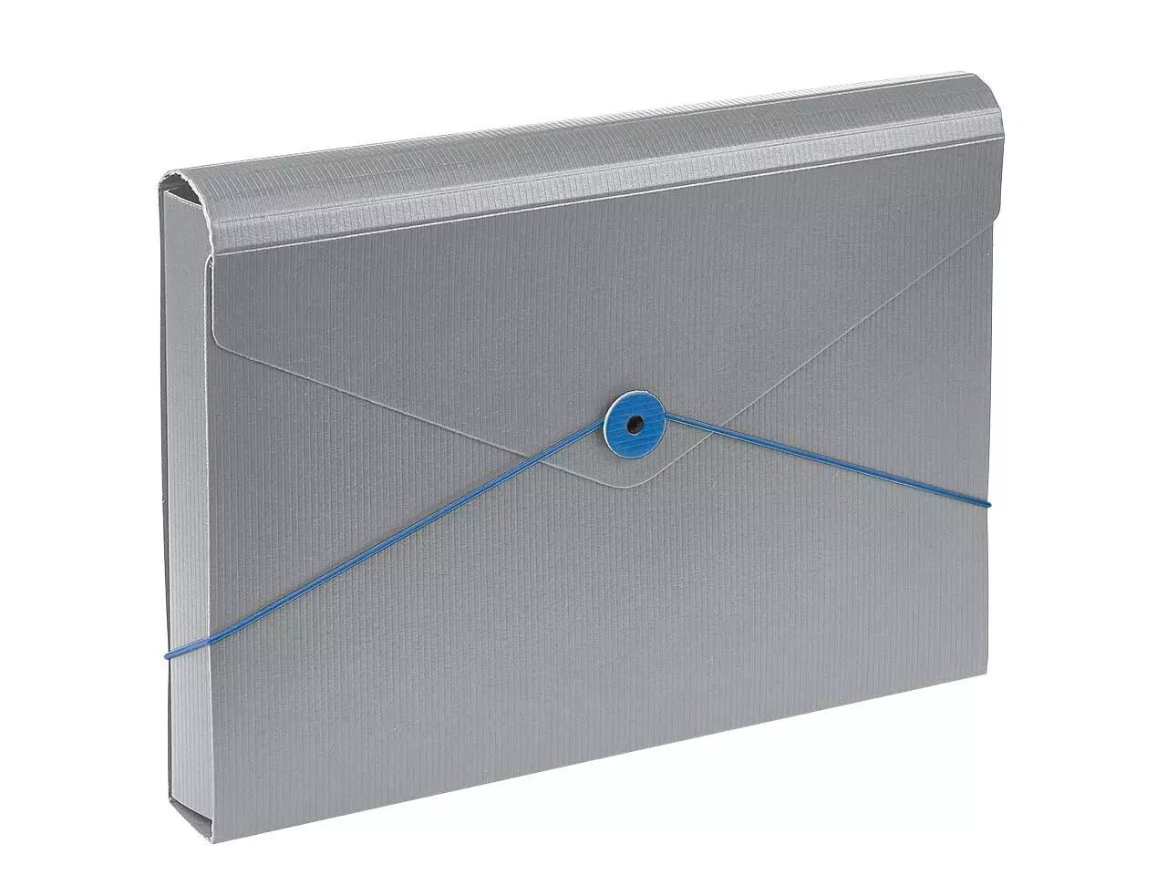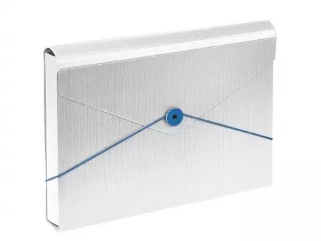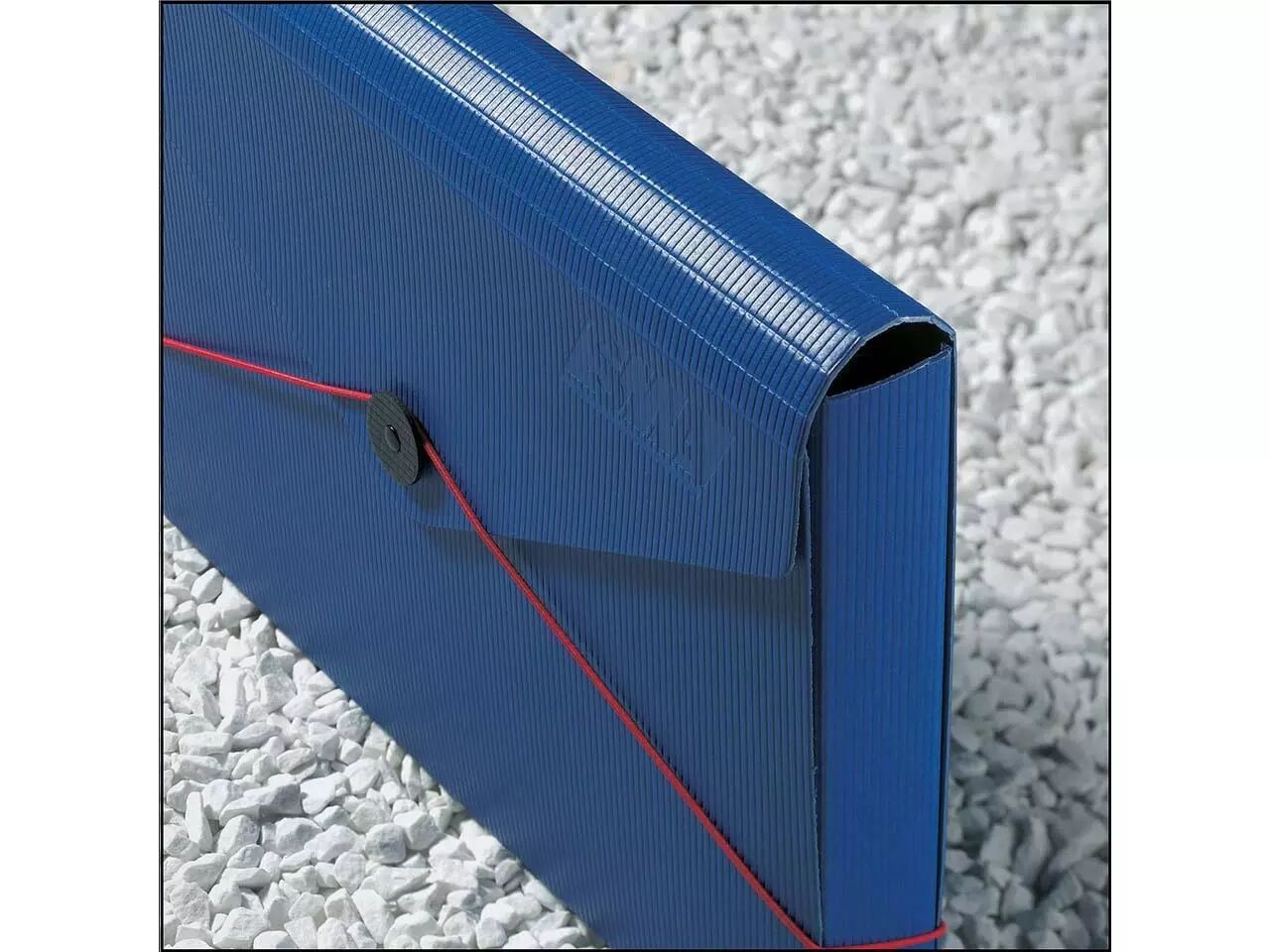Porte-documents en carton recyclé, avec rabats et fermeture par élastique sur bouton de couleur contrastée. Intègre une fente pour carte de visite, une boucle élastique porte-stylo. Solide carton recyclé de 1,2 mm d'épaisseur, avec label Ange bleu. Pour format A4, capacité d'environ 3,5 cm. Dimension L32,5 x P24 cm. Disponible en 5 couloris.