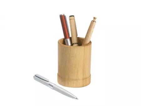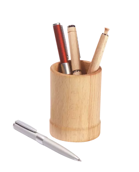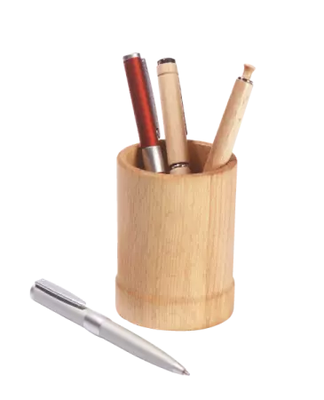 Pot à crayons de 7 cm de diamètre et 9 cm de hauteur, réalisé en bois de hêtre naturel, protégé à l'huile dure. Vendu sans stylos.