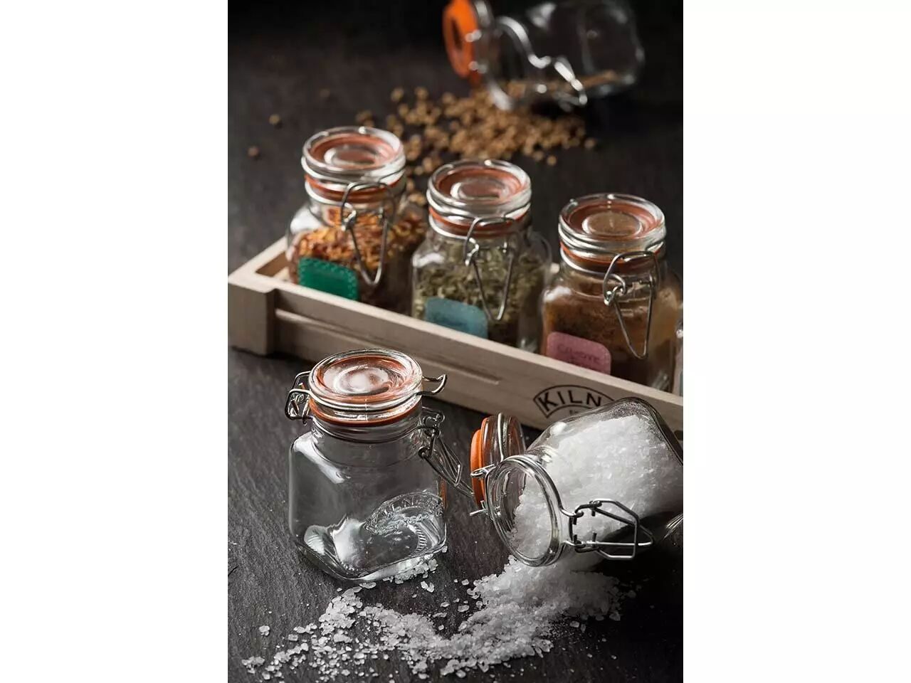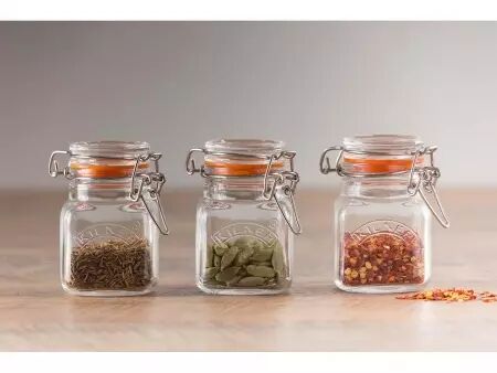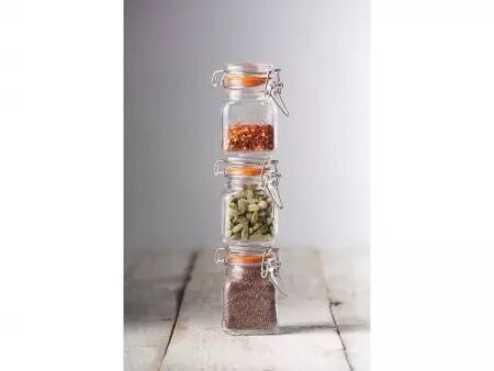 Ce petit pot avec fermeture à étrier en acier inxydable de marque KILNER est idéale pour conserver les herbes et les épices. Avec une finition de haute qualité, ce pot à épices carré conserve la fraîcheur de son contenu plus longtemps grâce au joint en caoutchouc hermétique à l'air. Capacité de 70 ml.