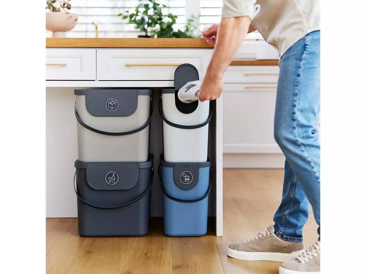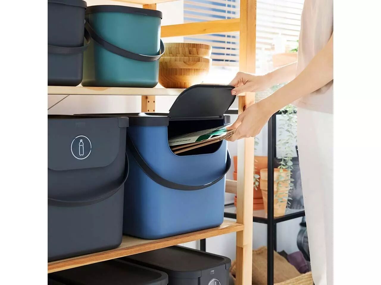 Une poubelle de tri qui avec son couvercle et son rabat vous facilitera le tri des déchets : idéale pour les papiers usagés, les bouteilles, les cartons d'emballage etc. Des autocollants sont inclus pour permettre aux usagers de mieux identifier le contenu de chaque poubelle. Les couvercles permettent l'empilement de plusieurs poubelles pour ograniser un îlot de tri. De solides anses facilitent le transport vers le centre de recyclage /déchetterie. Existe en deux capacités : 25 et 40l.
