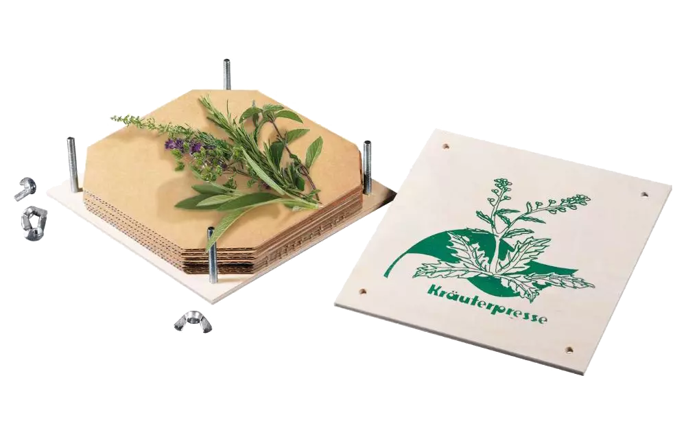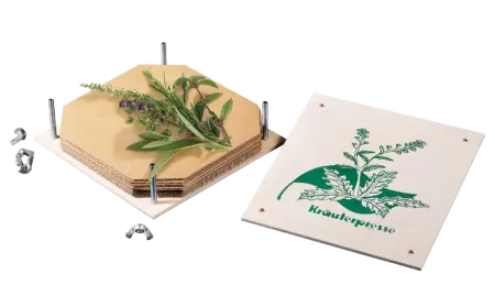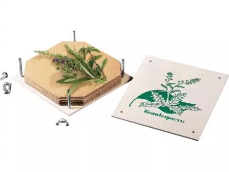 Pour faire son herbier soi-même ! Les grands peuvent aussi s'y adonner. Avec les fleurs ou plantes séchées, vous pouvez composer un calendrier par exemple, ou fabriquer un guide des plantes original. Presse de qualité en contre-plaqué de bouleau (classe de risque E1) munie de 4 écrous et 8 cartons solides. Dimensions : 18 x 18 cm.