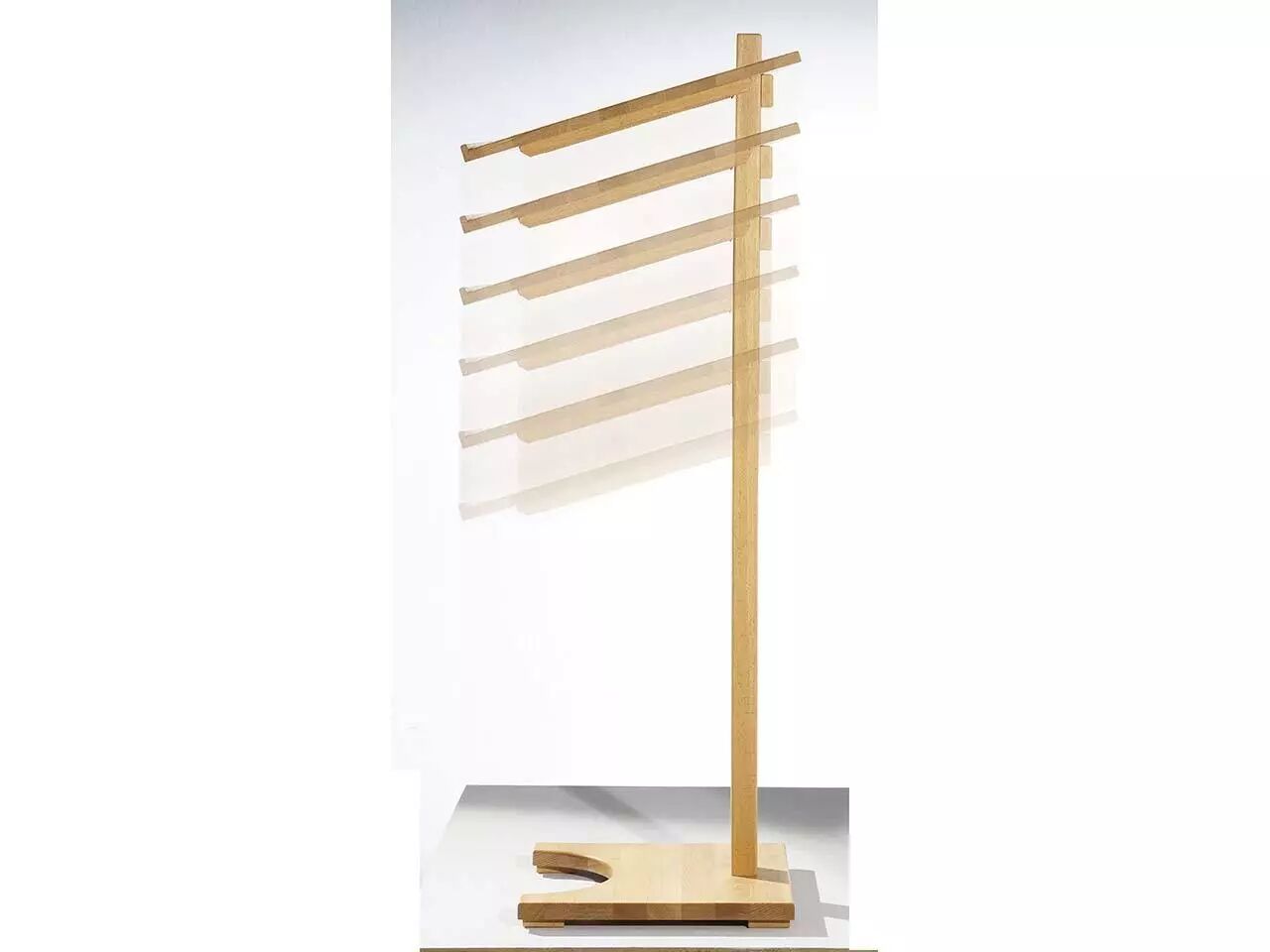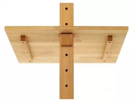 L'écritoire, incliné d'env. 20° et de dimensions L 50 x l 50 x h 2 cm, est garni d'une bordure antiglisse pratique et peut se régler à une hauteur de 62 à 113 cm (bord avant). Pour faciliter le transport, le pupitre est démontable grâce à l'écritoire amovible. Réalisé en bois de hêtre massif abouté huilé issu des forêts nationales d'Ukraine, hauteur totale 131 cm. Poids 7,5 kg.