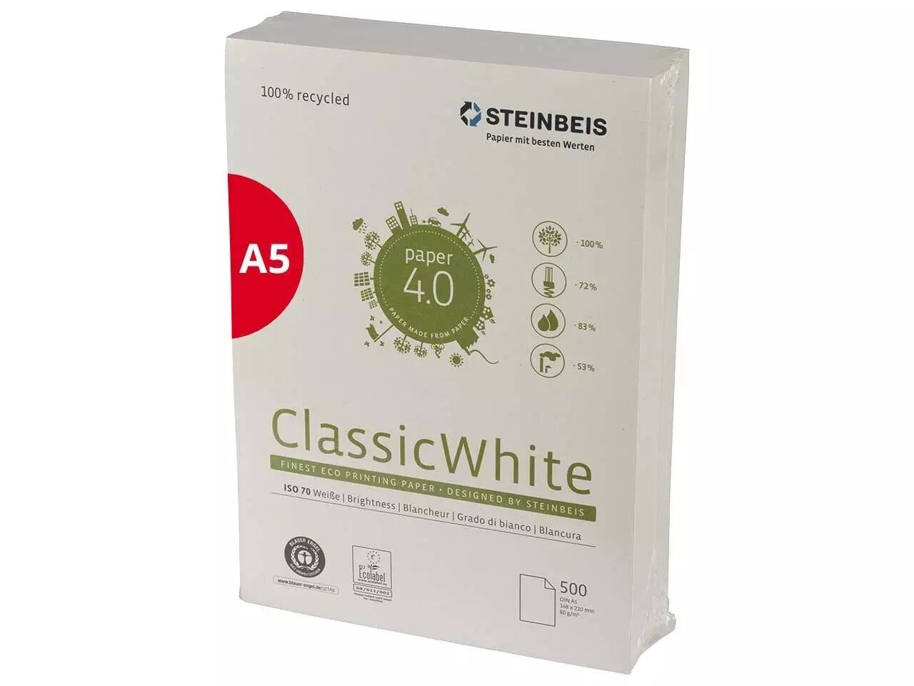 Accueil > Papier recyclé et écologique > Ramette de papier > Ramette au détail > Papier recyclé Steinbeis « Classic White » 80g