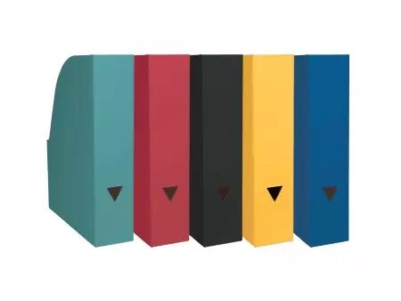 Existe en 5 couleurs. Format A4. Pour classer revues, brochures, catalogues, etc.