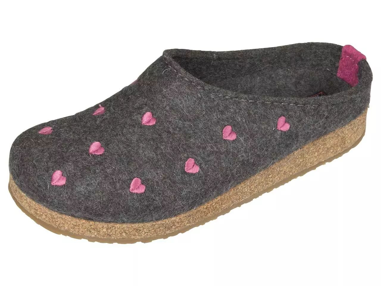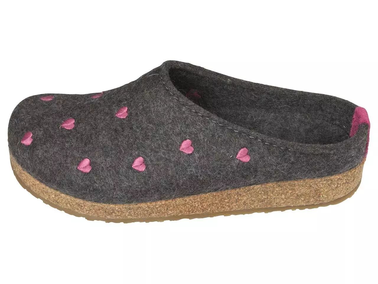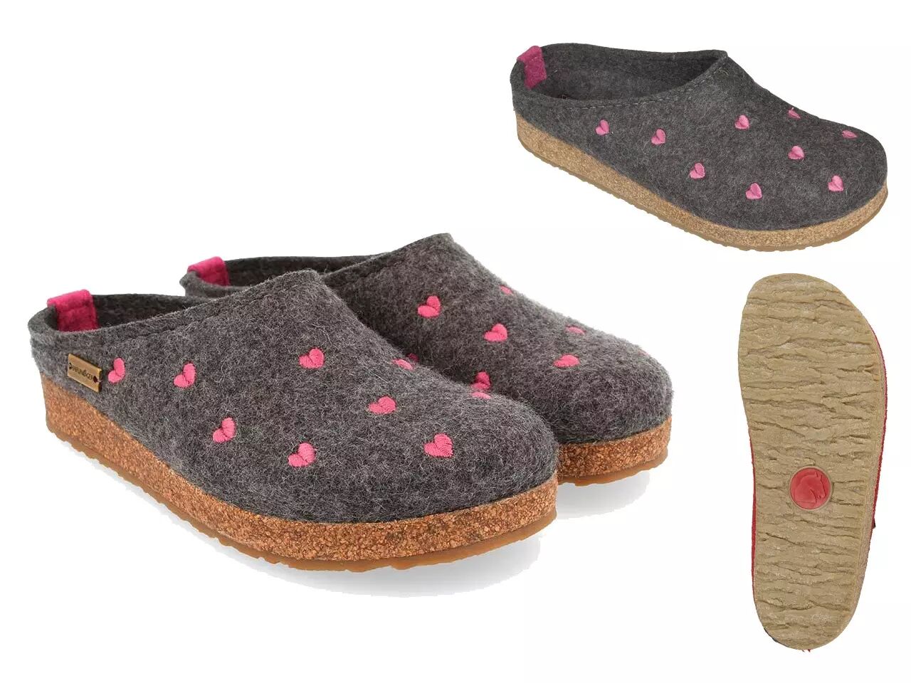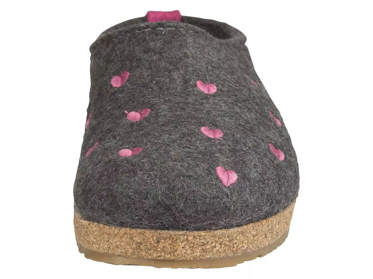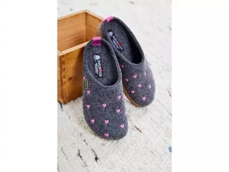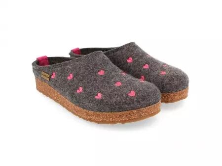 Les chaussons Haflinger "Grizzly Cuoricino" sont à la fois confortables et chics. L'épais feutre en pure laine vierge crée une chaleur agréable sans provoquer de transpiration. Sa large ouverture ne comprime pas le pied. La semelle intérieure en liège et latex, de forme anatomique, accueille parfaitement votre voute plantaire. La fome arrondie de la semelle extérieure favorise la mobilité des articulations et une bonne adhérence au niveau des orteils, pour une marche confortable. La semelle extérieure robuste est également antidérapante. Fabriqué en Allemagne.