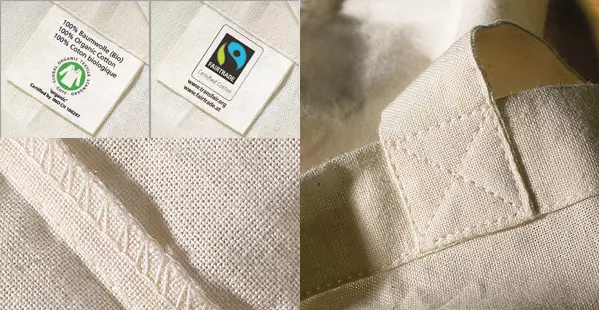 Ces sacs durables sont fabriqués avec un coton issu de l'agriculture biologique contrôlée. L'organisme certificateur indépendant GOTS « Global Organic Textile Standard » contrôle toute la chaîne de production. Les conditions de travail sont paranties par la norme SA8000, le management de la qualité et de l'environnement est certifié suivant les normes ISO9001 et 14001. Tous les sacs portent le logo « Fairtrade », attribué pour les textiles produits et commercialisés en respectant des conditions de travail et de commerce équitables et sociales.