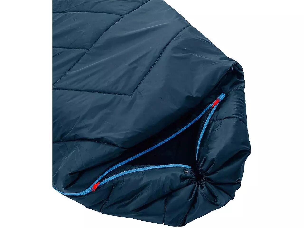 Sac de couchage de forme rectangulaire, zippé, pour vous accompagner lors de vos randonnées ou vos excursions. Garnissage en fibres synthétiques et polyester recyclé, qui sèche rapidement et retient la chaleur. Convertible en couette. S'il fait plus froid, la tête peut être transformée en une capuche tridimensionnelle. Pour dormir à deux, il suffit d'associer 2 sacs de couchage de marque VAUDE. Le sac de couchage est léger, fabriqué à partir de matériaux choisis (VAUDE est réputé pour le respect des ressources) et a été pensé pour être réparable. Il est utilisable pour des températures descendant jusqu'à -11 °C au maximum. Taille : 78 x 220 cm, format plié : 20 x 20 cm. Deux coloris au choix.