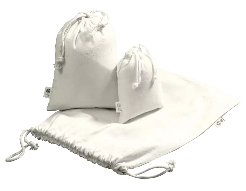Une étiquette cousue sur le côté des articles présentés sur cette gamme renseigne sur la qualité environnementale et sociale de ces sacs en coton bio de qualité supérieure rigoureusement contrôlé : l'ensemble du processus de production est certifié GOTS (Global Organic Textile Standard). Ils sont également porteurs du label commerce équitable.