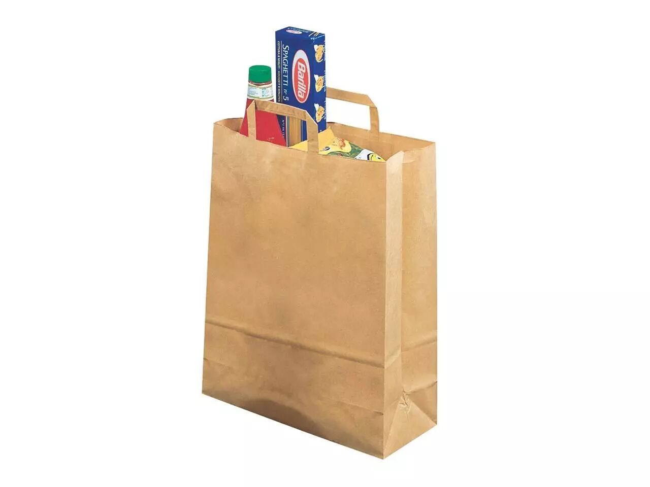 Sac papier recyclé avec soufflet de 11 cm, 100% recyclé, résistant à la déchirure. Vierges, sans marquage.