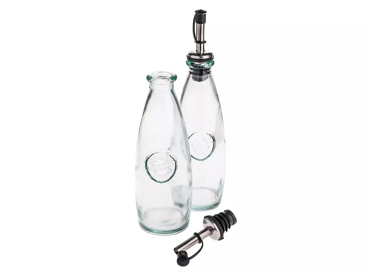 Ces belles bouteilles en verre de style campagnard permettent de voir à tout moment ce qu'elles contiennent et affichent leur caractère écologique avec l'inscription « authentic 100 % recyclingglass ».