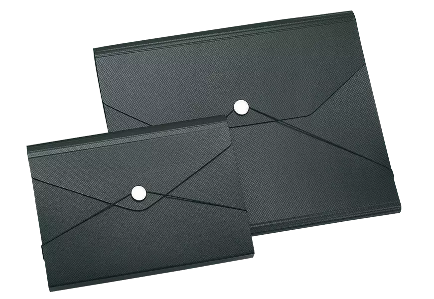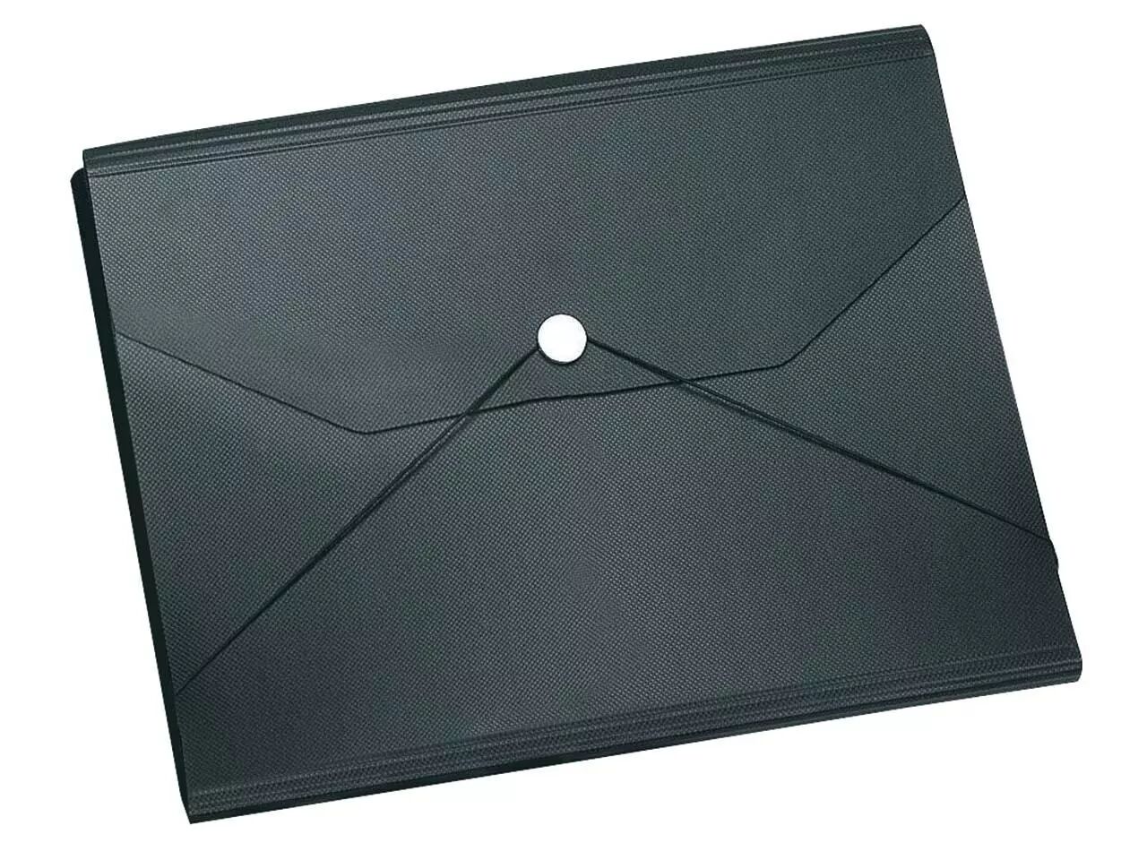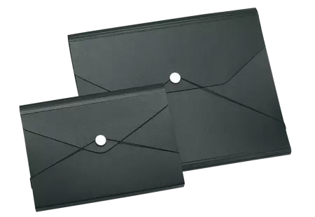 Serviette à documents recyclée OPACO disponible à présent uniquement au format A3. Carton recyclé très fort de 1 mm labelisé « Ange Bleu ». Revêtement anti-poussière et hydrofuge grâce à une peinture sans solvant et aux composants végétaux. Élastique de fermeture. Longue durée de vie. Capacité : jusquà 37 mm de documents.