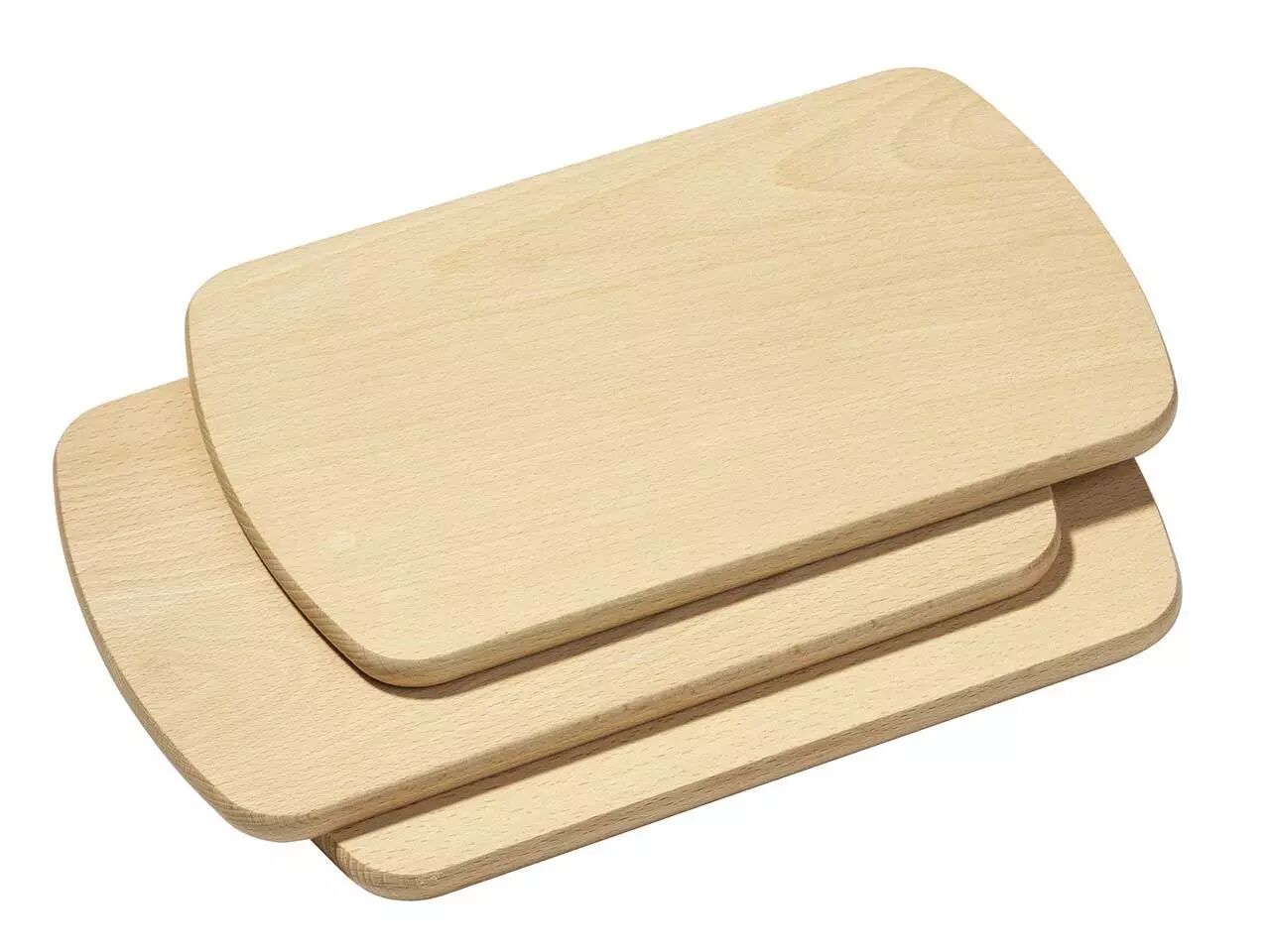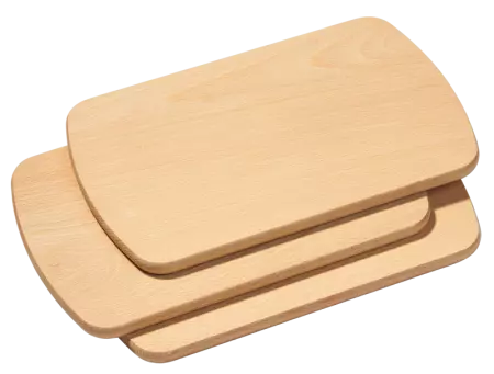 Planches à découper classiques en bois de hêtre massif, surface veinée. Fabriquées en Europe, à partir de bois issu de forêts gérées durablement : label FSC.