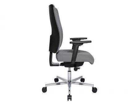 Le siège de bureau Topstar "Sitness Open X Deluxe (P)", dont la hauteur d'assise est réglable en continu, assure une bonne ventilation du dos grâce à son dossier conçu avec une garniture en plusieurs couches. Le dossier est réglable en hauteur et en inclinaison. L'articulation Sitness, intégrée de manière invisible dans l'assise, permet à l'assise d'être mobile en trois dimensions. L'assise en creux confortable avec bord avant arrondi dispose d'un appui pelvien intégré, ce qui permet au bassin de se redresser et favorise une position assise naturelle. Le nouveau mécanisme synchrone permet un réglage synchrone de l'inclinaison de l'assise et du dossier. Livré avec des accoudoirs réglables en hauteur et en largeur.