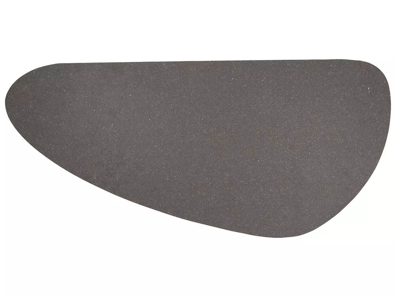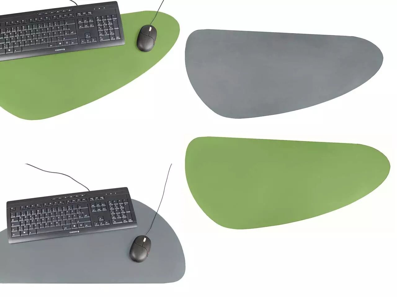 Sous-main asymétrique, utilisable des deux côtés : revêtement de couleur à base d'eau sur le dessus, fibre de cuir non traitée sur le dessous. L74 x H33 cm. Épaisseur : environ 2,5 mm.