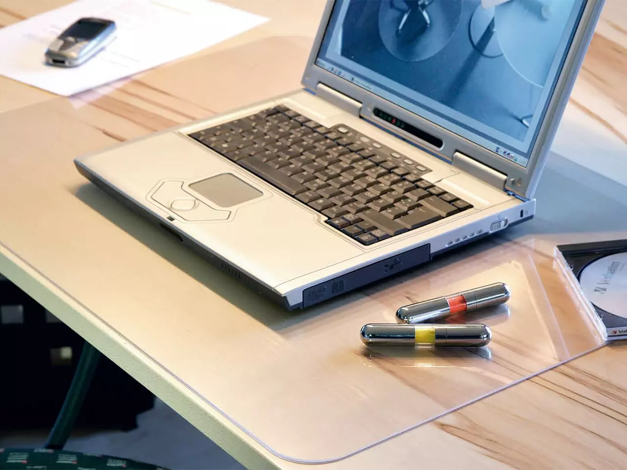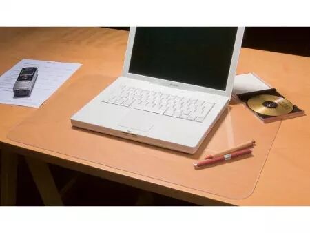 Ce sous-main transparent est idéal si vous avez un beau bureau en bois massif que vous voulez protéger sans le recouvrir. Ce sous-main transparent est confectionné dans une matière plastique respectueuse de l'environnement : du polyéthylène (PET), sans plastifiant, sans bisphénol A, et sans émissions toxiques contrairement aux sous-mains traditionnellement à base de PVC ou de vinyl. Il est 100% recyclable. Sur la face inférieure, une couche adhésive VAB® thermosoudée empêche le sous-main de glisser. Dimensions : 70 x 50 cm. Épaisseur : 1,8 mm