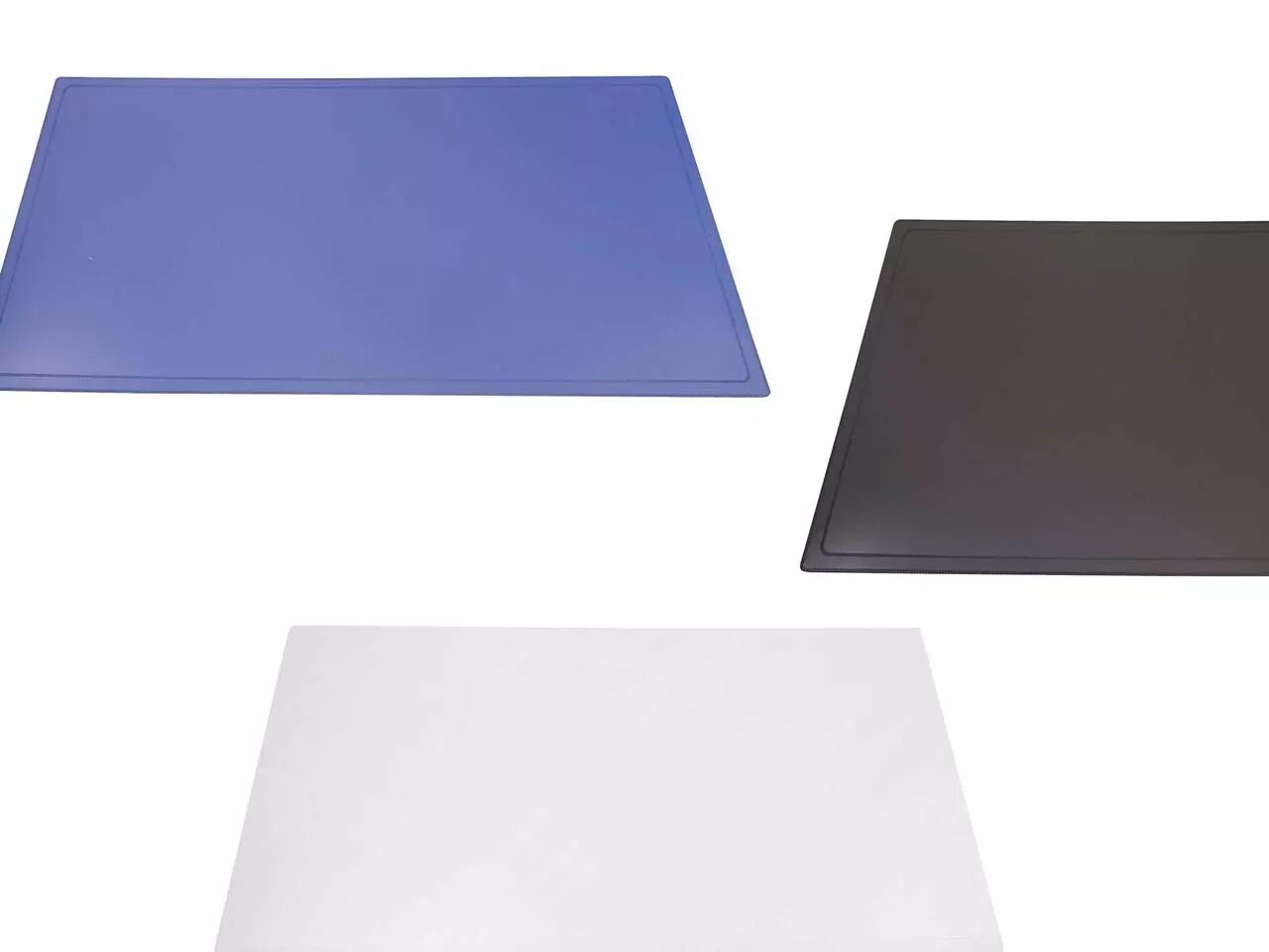 Format très pratique pour ce sous-main, il est parfait devant les écrans. 100 % polypropylène donc sans chlore. Dimensions L65 x P34 cm, épaisseur : 1,2 mm.