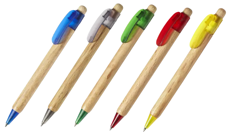 Corps et bouton-poussoir en hêtre vernis incolore, donnent un aspect naturel à ces stylos. Le bois provient de forêts allemandes, certifié PEFC pour sa gestion durable. Les embouts et clips sont sans chlore, en matière plastique semi-transparent (ABS) ce qui leur donne une touche fraîche et moderne. Fabriqués en Allemagne.