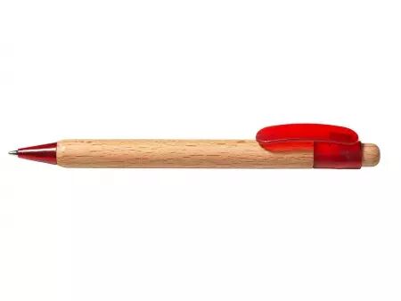 Corps et bouton-poussoir en hêtre. Embouts et clips en plastique translucide.