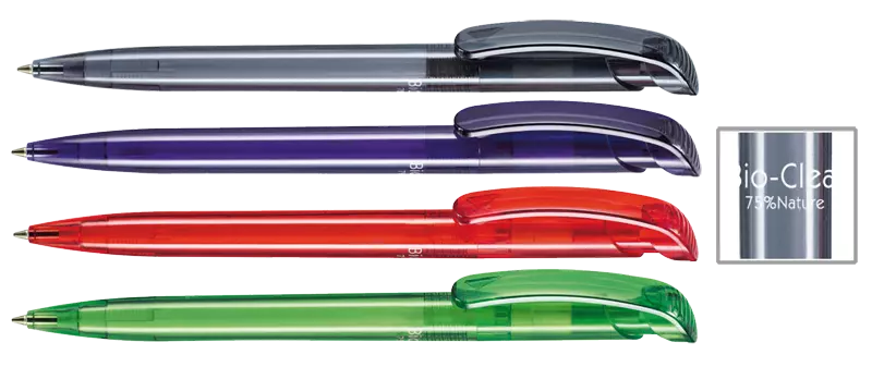 La cellulose utilisée est issue de bois tendres européens produits en sylviculture renouvelable. Une petite impression « Bio-Clear 75 % Nature » en haut de la tige rappelle l'utilisation de cette substance innovante. Avec recharge Jumbo et capacité d'écriture env. 2 500 m. Longueur env. 14,5 cm.