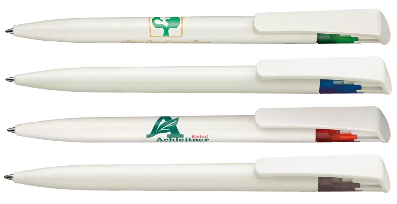 Comme le révèle dès le premier regard une petite inscription, les stylos à bille «Bio-Star» sont constitués à 80% de matières premières renouvelables ! Le boîtier solide est fabriqué à 100% en cellulose obtenue à partir de bois tendres européens. Le mécanisme et la bague qui l'entoure sont en plastique ABS. Avec surface d'impression particulièrement grande. Utilise des recharges X-20.